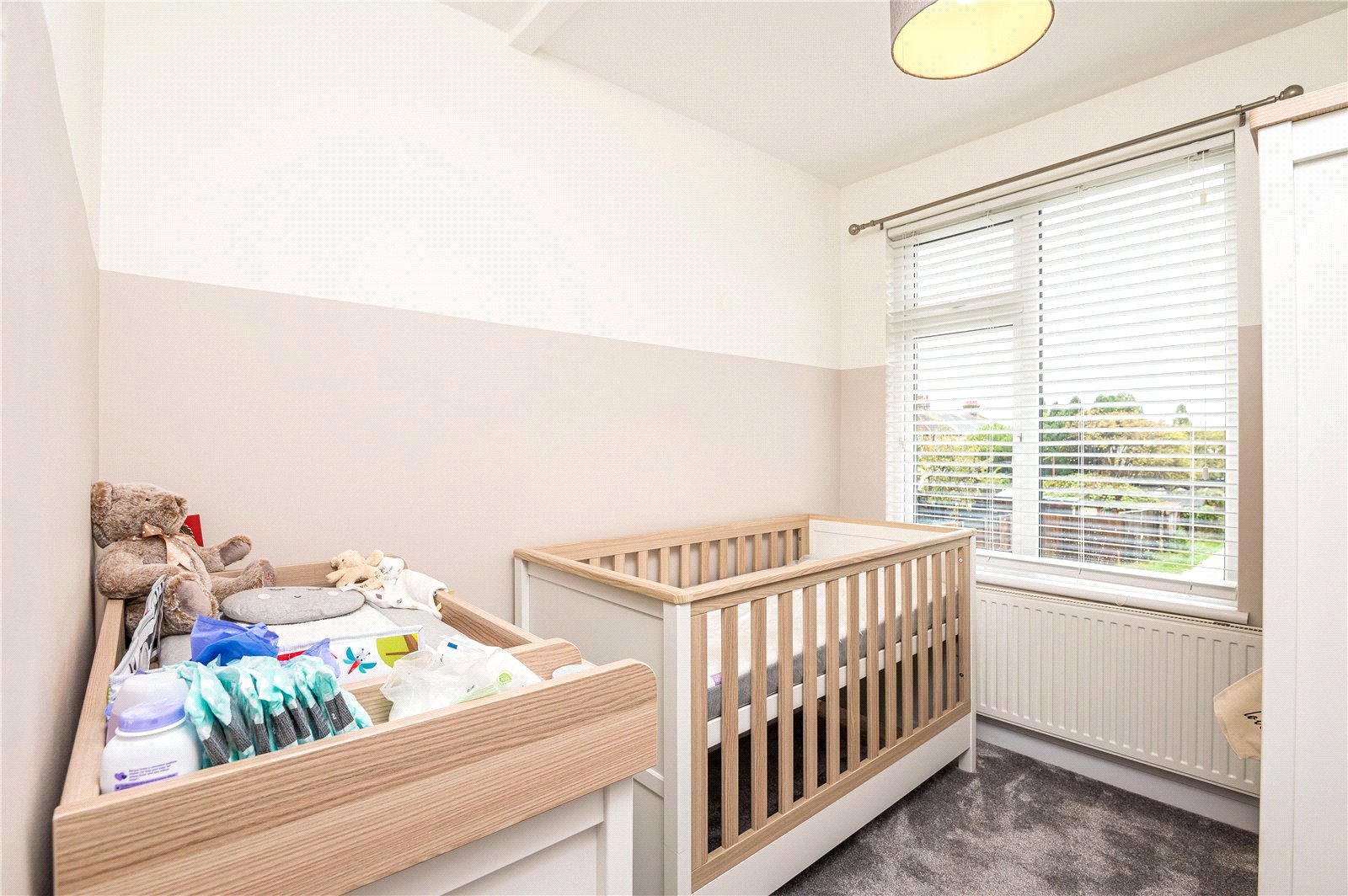 Doors lead off to ground floor rooms. Stairs lead to first floor accommodation. Wood effect laminate flooring. High level skirting. Wall mounted radiator. Smooth plastered ceiling. Under stairs storage cupboard housing utilities.