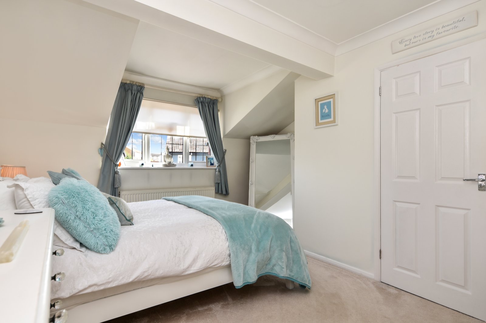 uPVC double glazed leaded window to front aspect allowing good natural light. Radiator. Useful recesses and alcoves providing scope for wardrobes and dressing area. Coving to smooth plastered ceiling. Panelled door to ensuite.