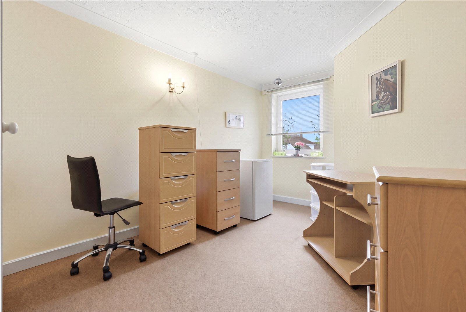 UPVC double glazed window to the front aspect Coved cornicing with textured ceiling. Two wall light points. Emergency pull cord. Wall mounted electric heater. Fitted wardrobes with matching overhead cupboards.