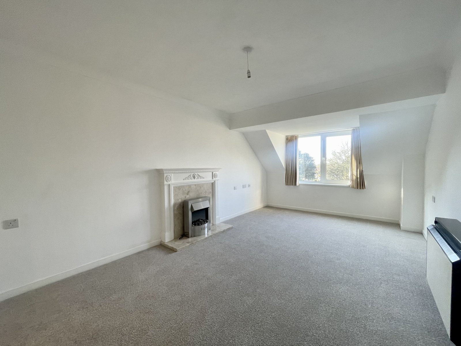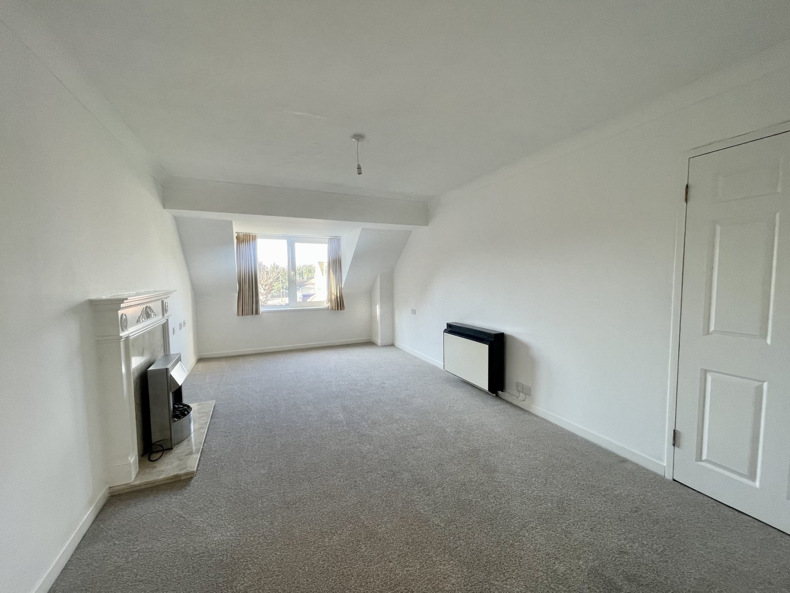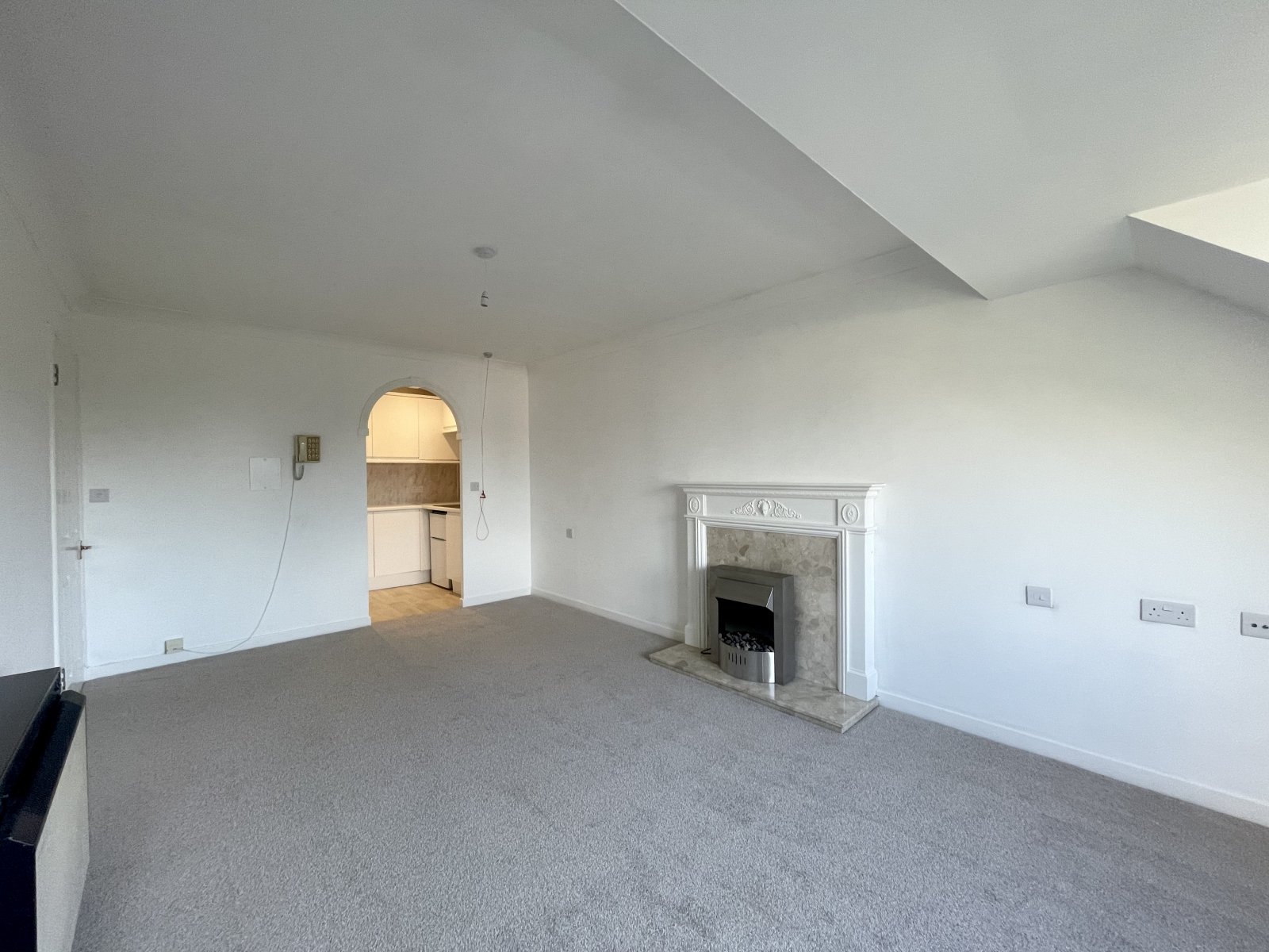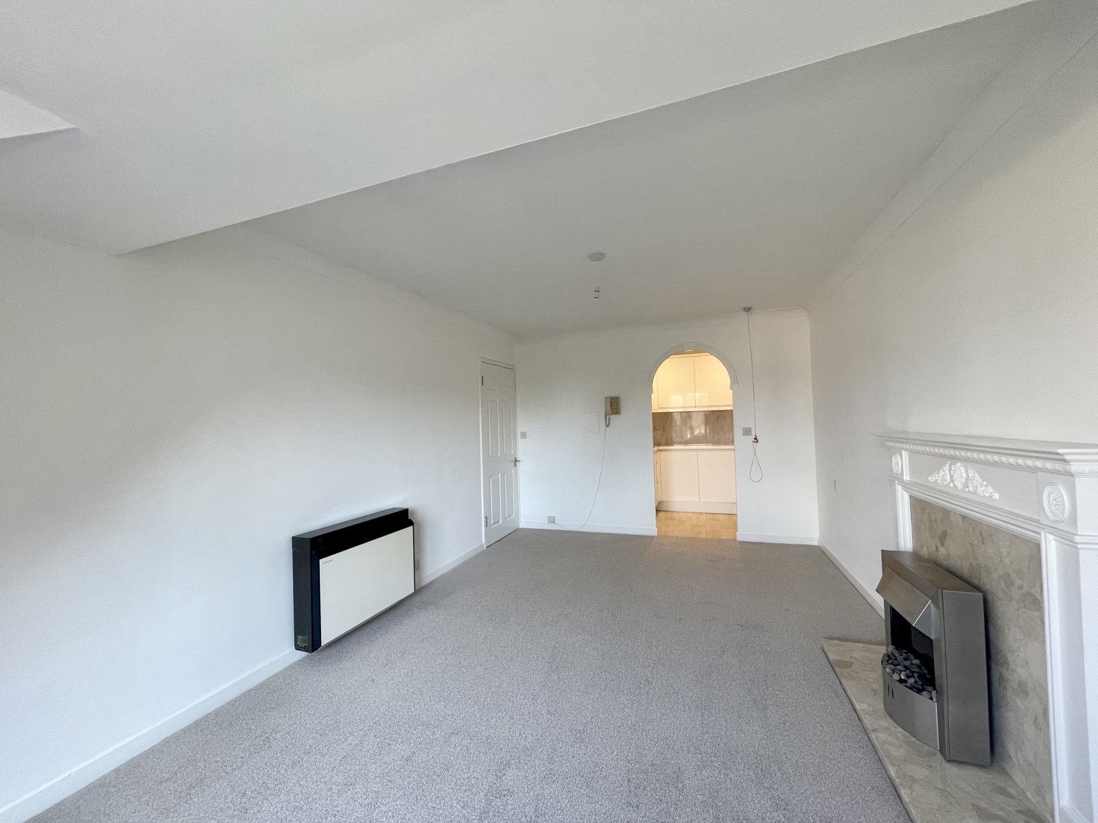 UPVC double glazed tilt and turn window to side overlooking communal rear garden and Thorpe Bay station gardens. Wall mounted electric storage heater. Feature fireplace with stone hearth and surround, wooden mantle and free standing electric fire. Newly carpeted throughout. High level skirting. Emergency pull cord system. Coved cornice to ceiling. Open archway to side provides access to the: