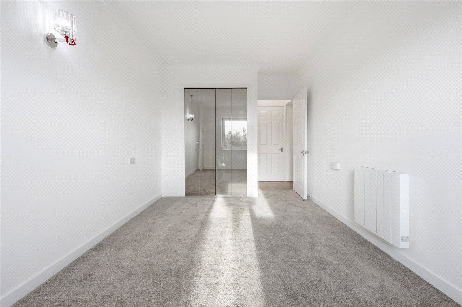 UPVC double glazed tilt and turn window to front enjoying a sunny south aspect. wall mounted electric heater. Fitted wardrobe unit with mirrored fitted doors. Newly fitted carpet. Wall mounted lighting. Emergency pull cord system. Coved cornice to ceiling.