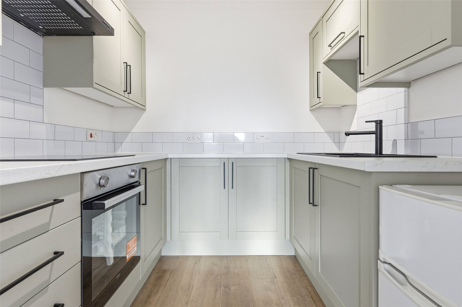 Fitted with a brand new range of base and eye level shaker style cabinets incorporating a rolled edge working surface, inset composite sink with mixer tap and drainer unit. Inset four burner gas hob with extractor hob above. Integrated electric fan assist oven. Space for free standing fridge/freezer. Tiled splashbacks. USB charging point to plug sockets. Wood effect laminate flooring. Coved cornice to smooth plastered ceiling.