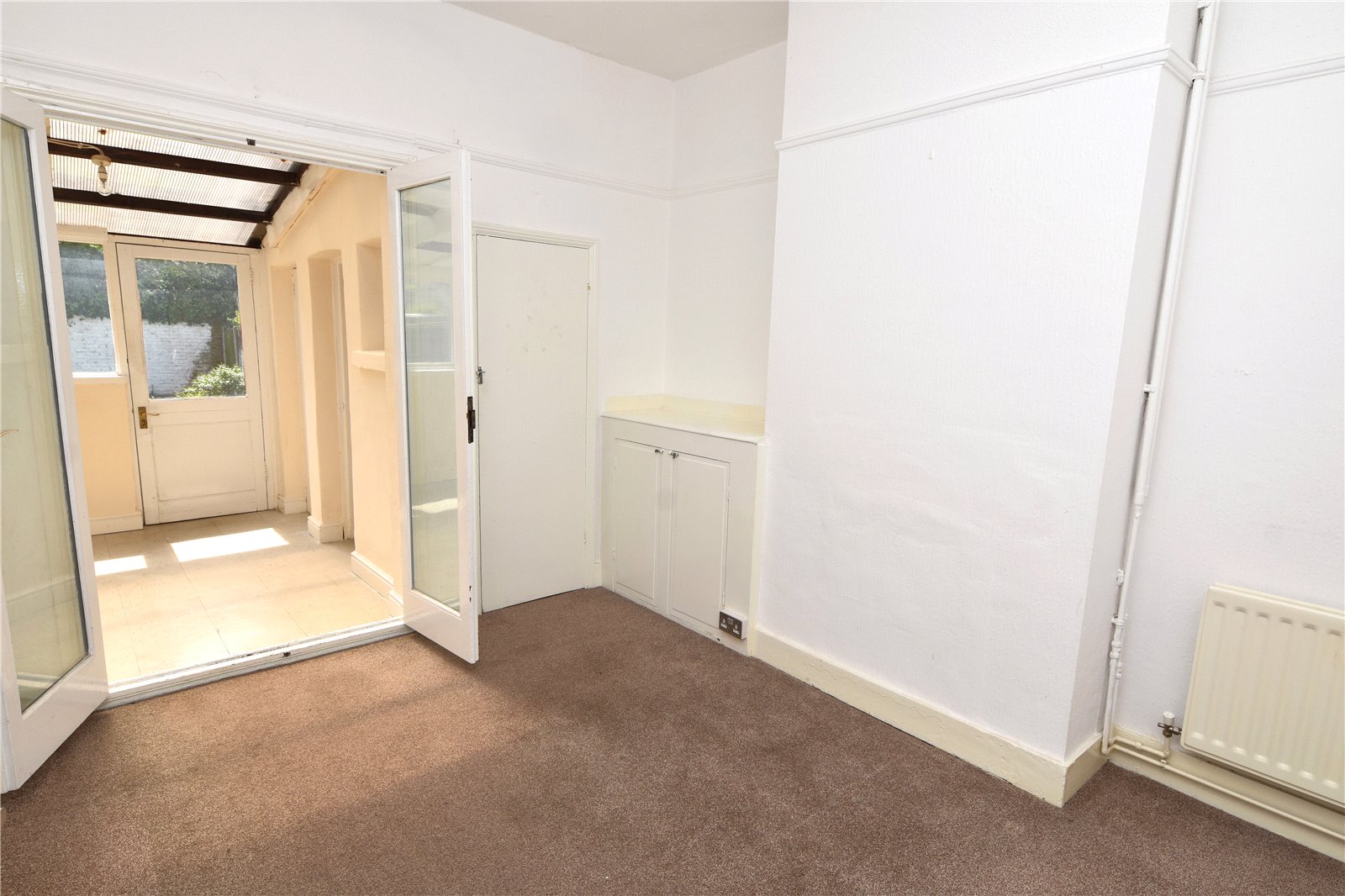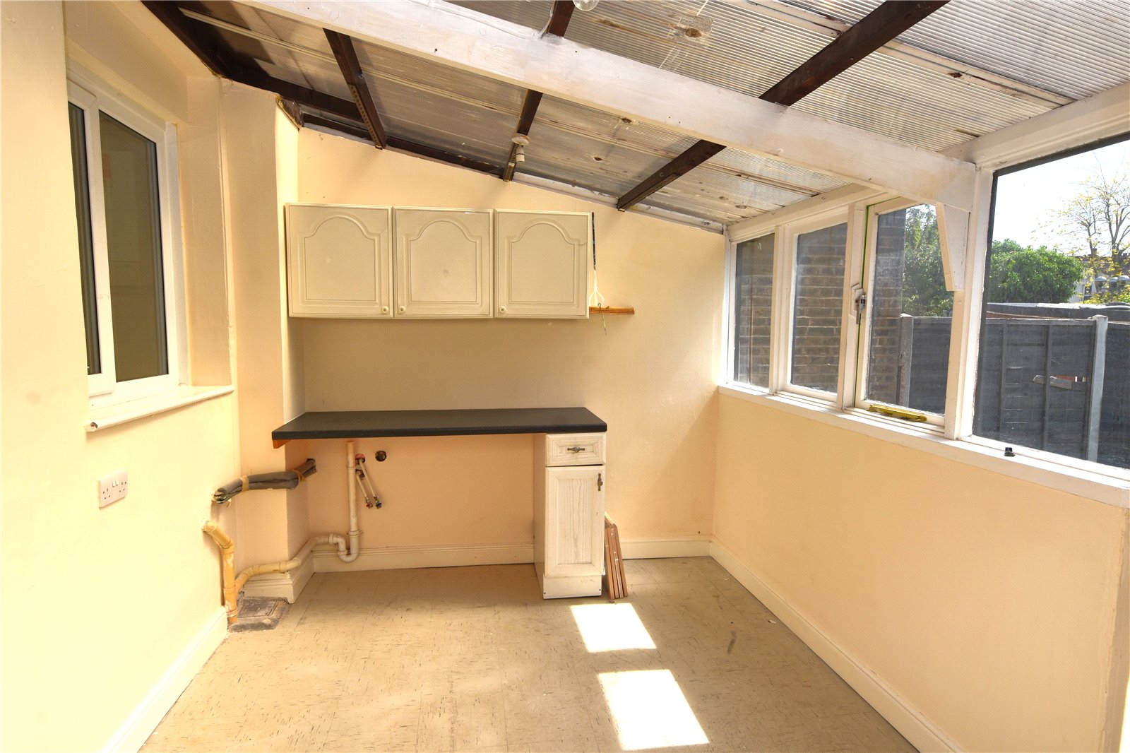 Windows to rear aspect with hardwood glazed door leading to the rear garden. Polycarbonate roofline. Fitted with range of cabinets to one aspect with under counter recess for appliances. Door to storage cupboard. Further access to recessed storage area.