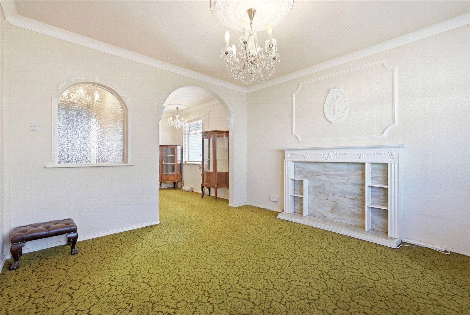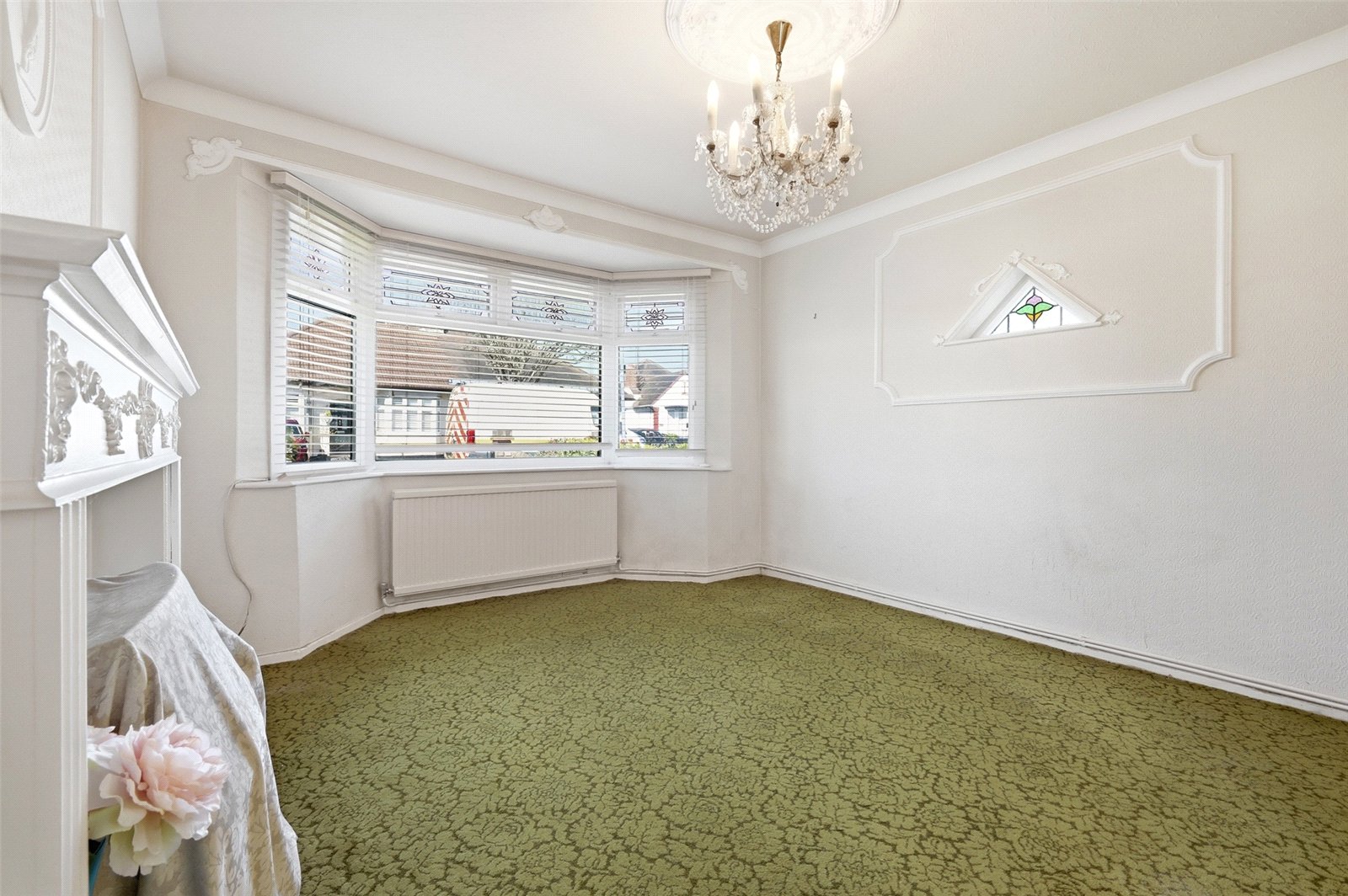Overall size. Large UPVC double glazed bay window to front. Further double glazed window to side. Feature leaded light window to side. Two wall mounted radiators. feature fireplace with gas fire. Coved ceiling with two ceiling roses.
