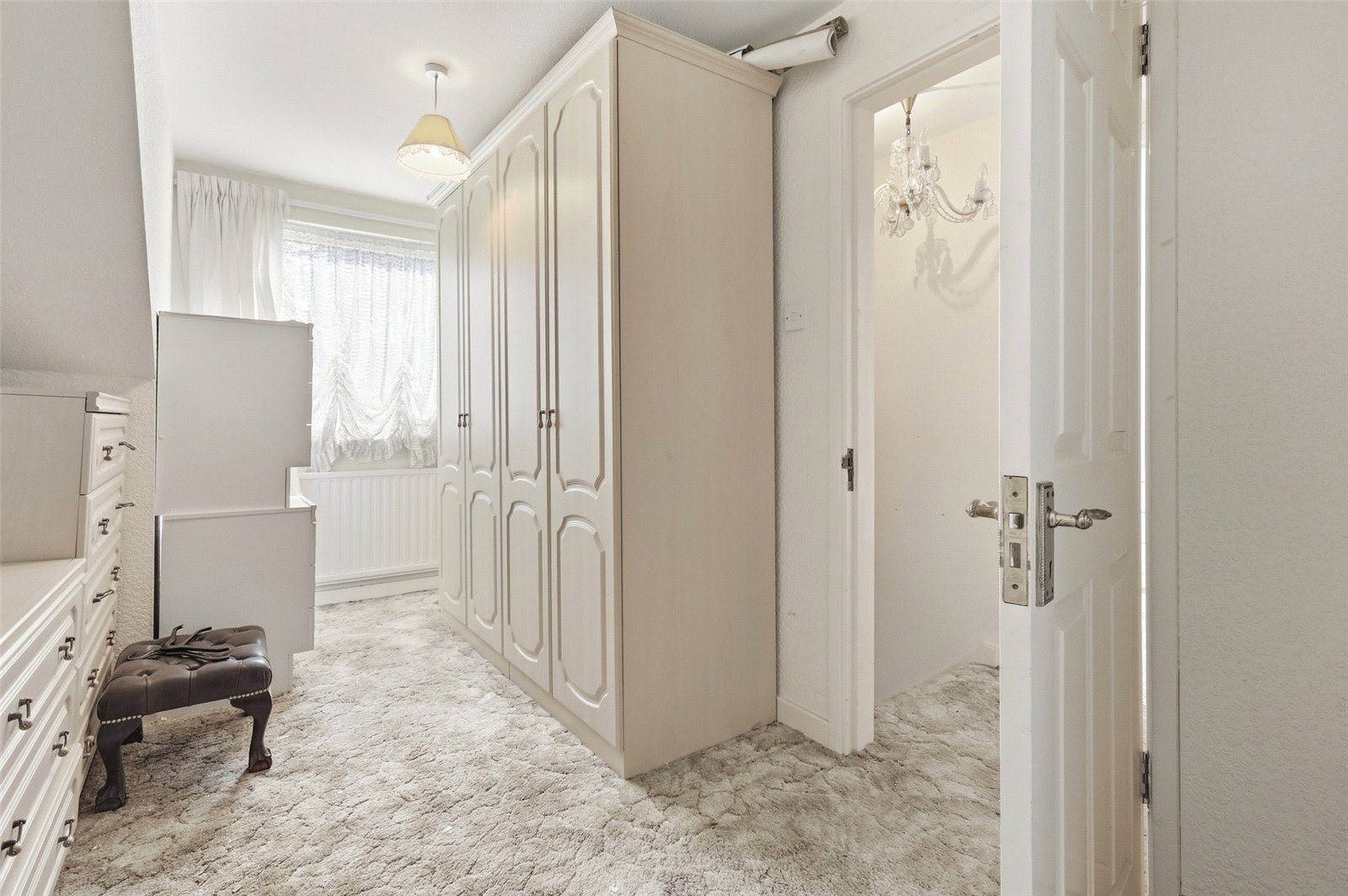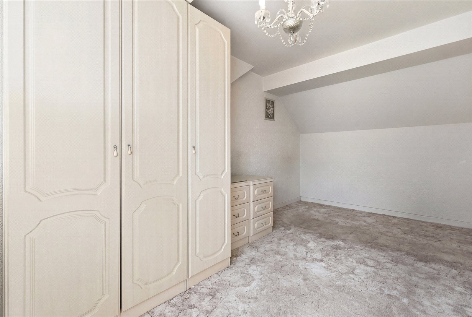 UPVC double glazed window to rear. Wall mounted radiator. Range of fitted wardrobe units. Fitted cupboard to front. Access to eaves storage space.