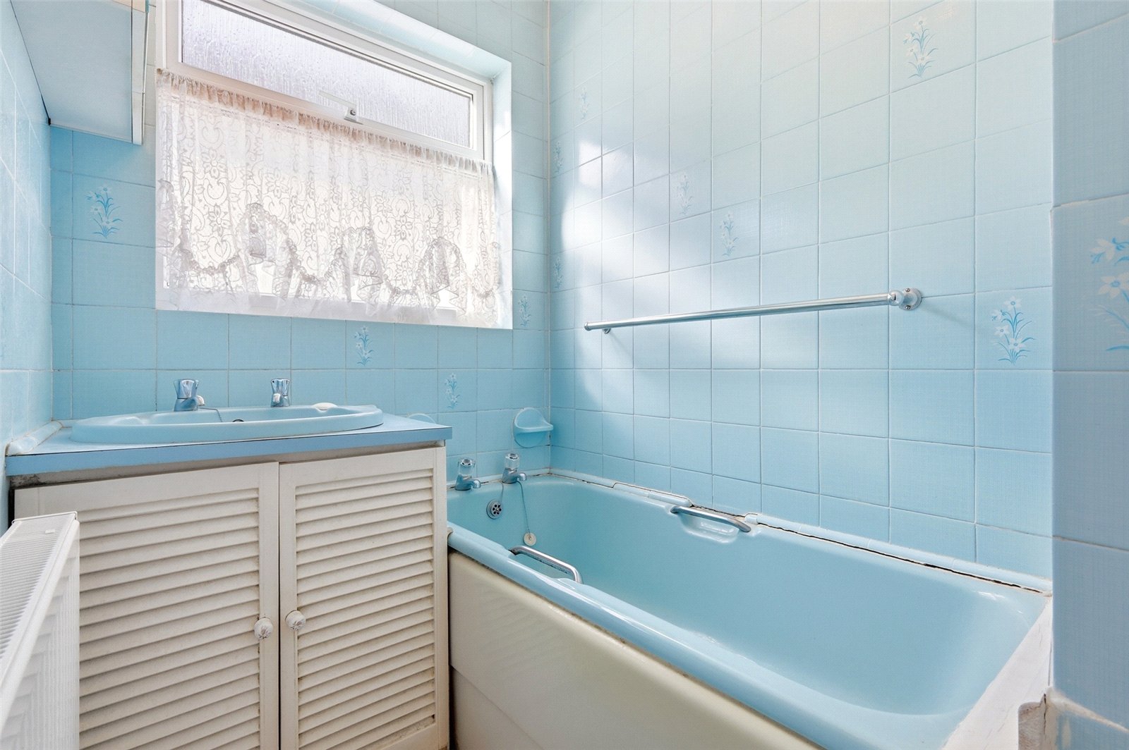 UPVC double obscure glazed window to side. Fitted with a two piece suite comprising; Countertop mounted wash basin, and panelled bath. Wall mounted radiator. Tile effect vinyl flooring. Part tiled walls.