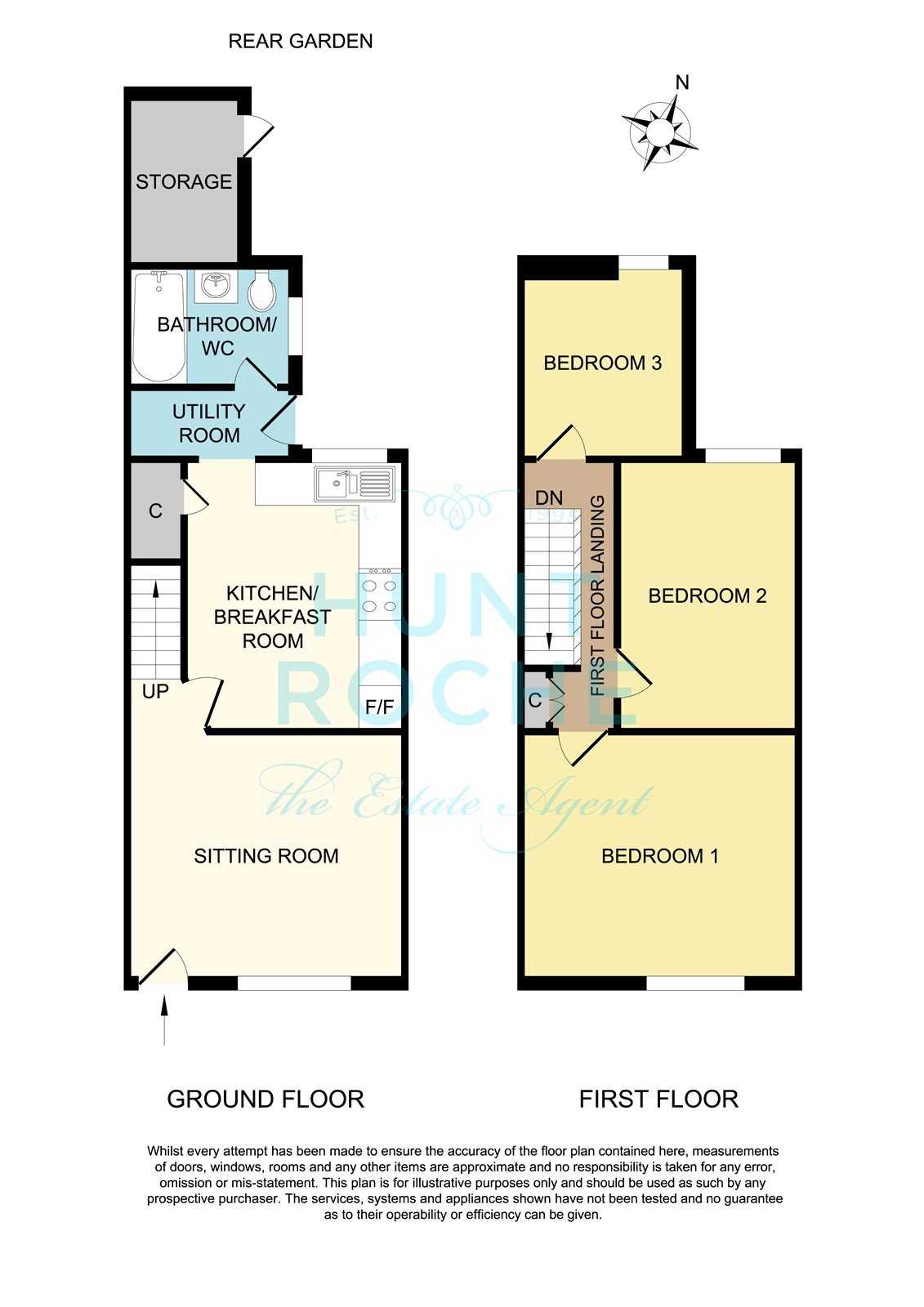 The rear garden commences from the kitchen/diner with a paved patio terrace, with steps leading up to a suntrap patio ideal for dining al fresco. The garden is attractively laid to lawn, with fencing to both sides and rear boundary, and secure gated rear access. There is access to the utility store which has space, plumbing and drainage for automatic washing machine, and further appliance space. External water supply. External lighting.