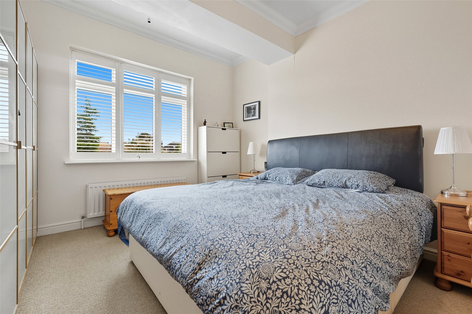 A good size double bedroom with double glazed window overlooking the rear garden with fitted plantation shutters. Radiator. Coved ceiling.