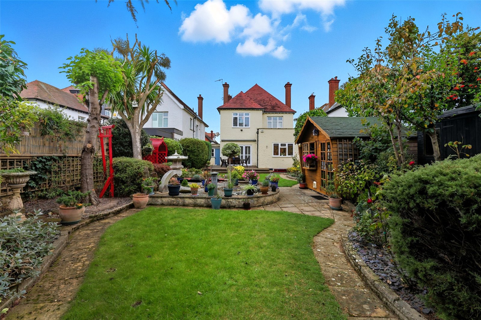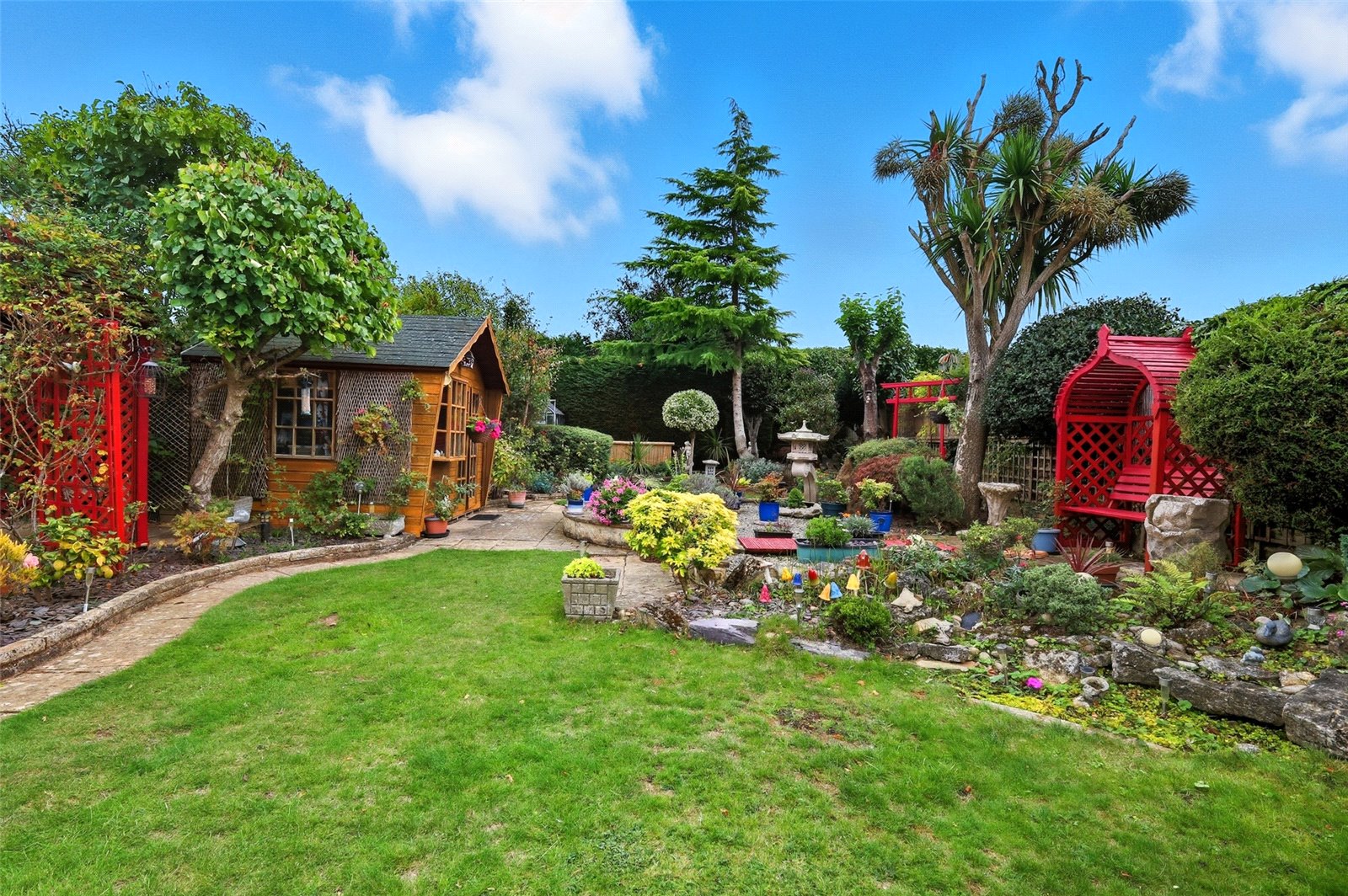 The property benefits from a large established and unoverlooked rear garden which is laid mostly to lawn with planted borders, maturing trees and shrubs. Rockery/Mediterranean style garden areas. Patio areas incorporating paths. Timber framed summerhouse. Aluminium framed greenhouse. Extensive natural wood decking area. Outside lighting. Electric sun awning. Cold water tap. Side entrance.