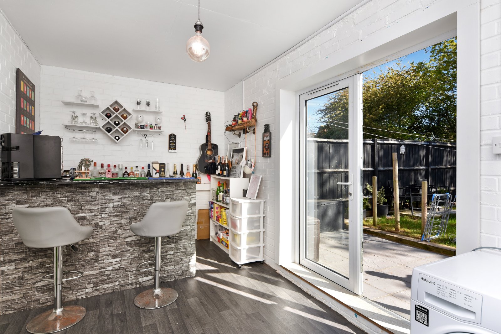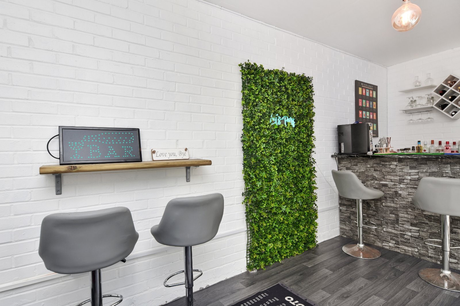The original garage, previously accessed via an up-and-over door, has been cleverly converted into a self-contained Garden Bar, creating a versatile and sociable space. This is accessed directly from the Garden.