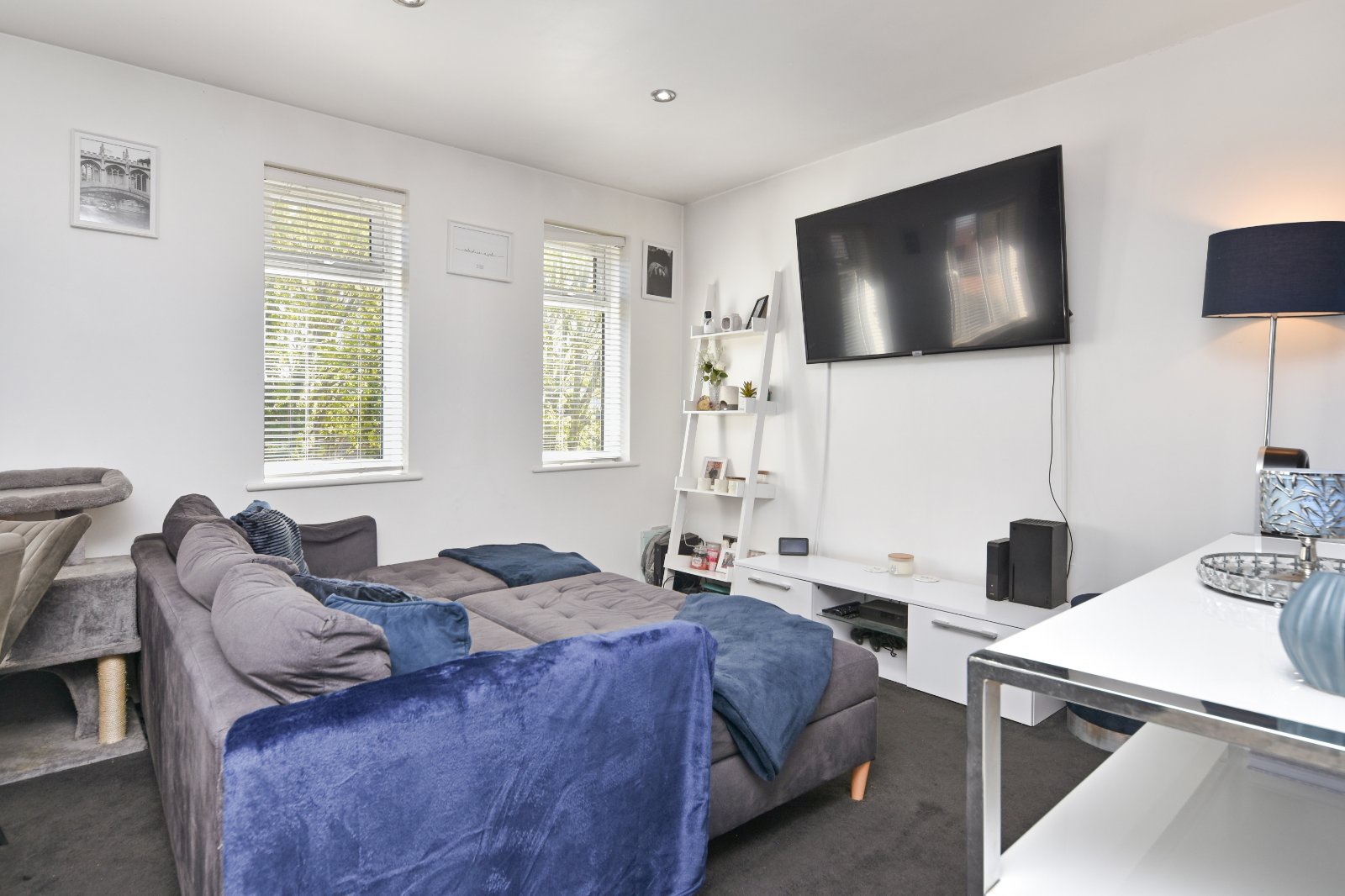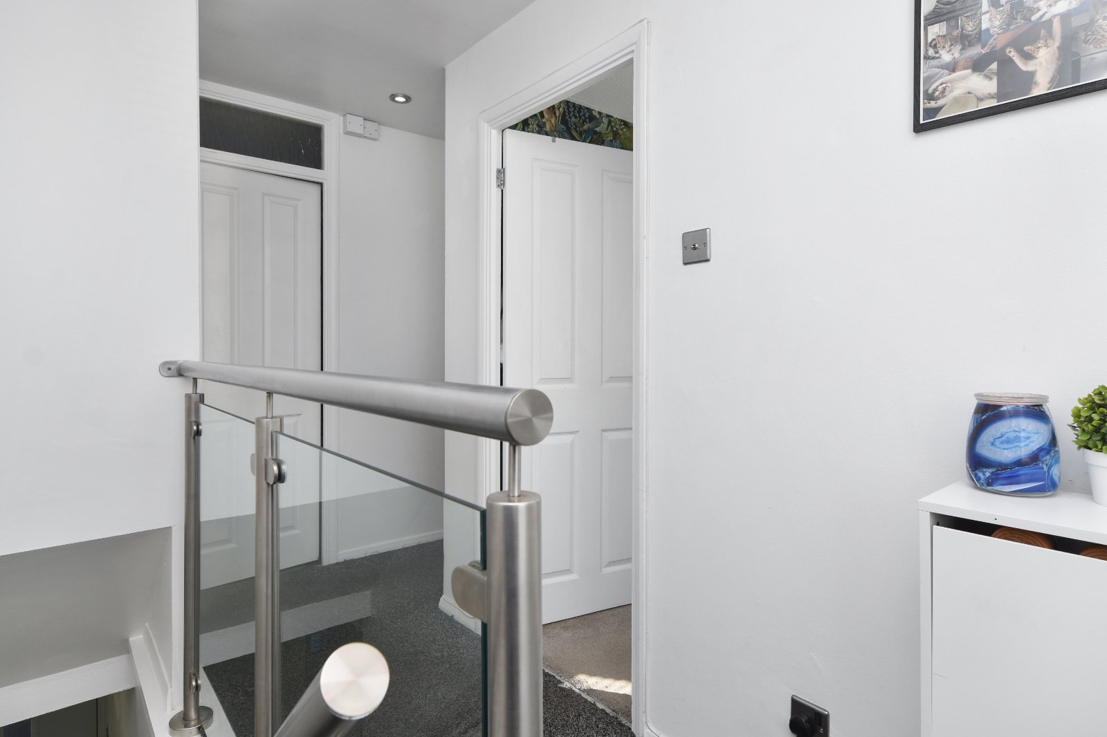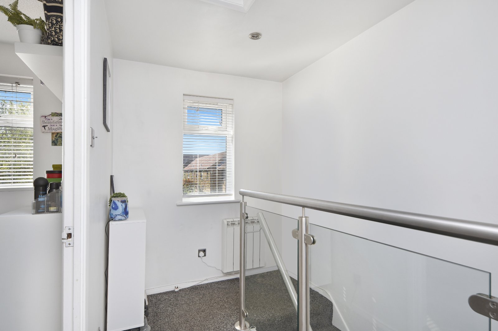 A bright and well-presented landing with uPVC double glazed window to the rear aspect and radiator. Over-stair storage cupboard housing the hot water cylinder. Featuring a contemporary glazed balustrade with stainless steel handrail, smooth ceiling with inset downlighters and access to loft space. Open plan access leads to the Living / Kitchen area, with panelled doors to the Bathroom and Bedroom.
