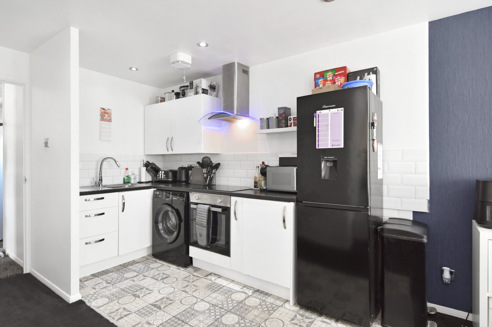Fitted with a range of modern base and wall mounted units with rolled edge work surfaces, incorporating a stainless steel single drainer sink unit with mixer tap over. Integrated appliances include a stainless steel oven with 'Beko' four ring electric hob and with stainless steel wall mounted extractor hood over inset with coloured LED lighting. Under counter recess for washing machine with further space for fridge/freezer. Smooth plastered ceiling inset with recessed lighting and ceiling mounted extractor fan.