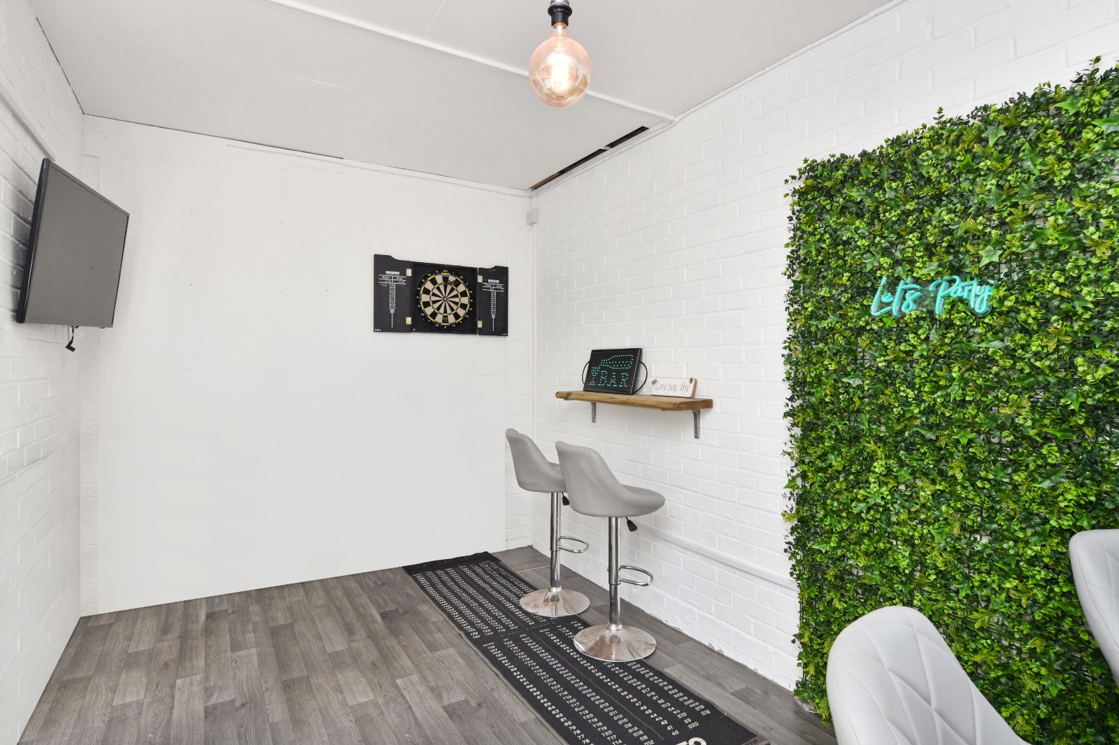 Fitted with power and lighting, the room is thoughtfully designed with a fitted bar, creating an ideal space for entertaining, while also offering flexibility for use as a home gym or leisure room.