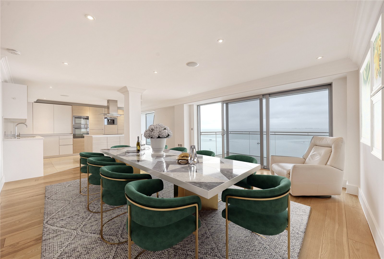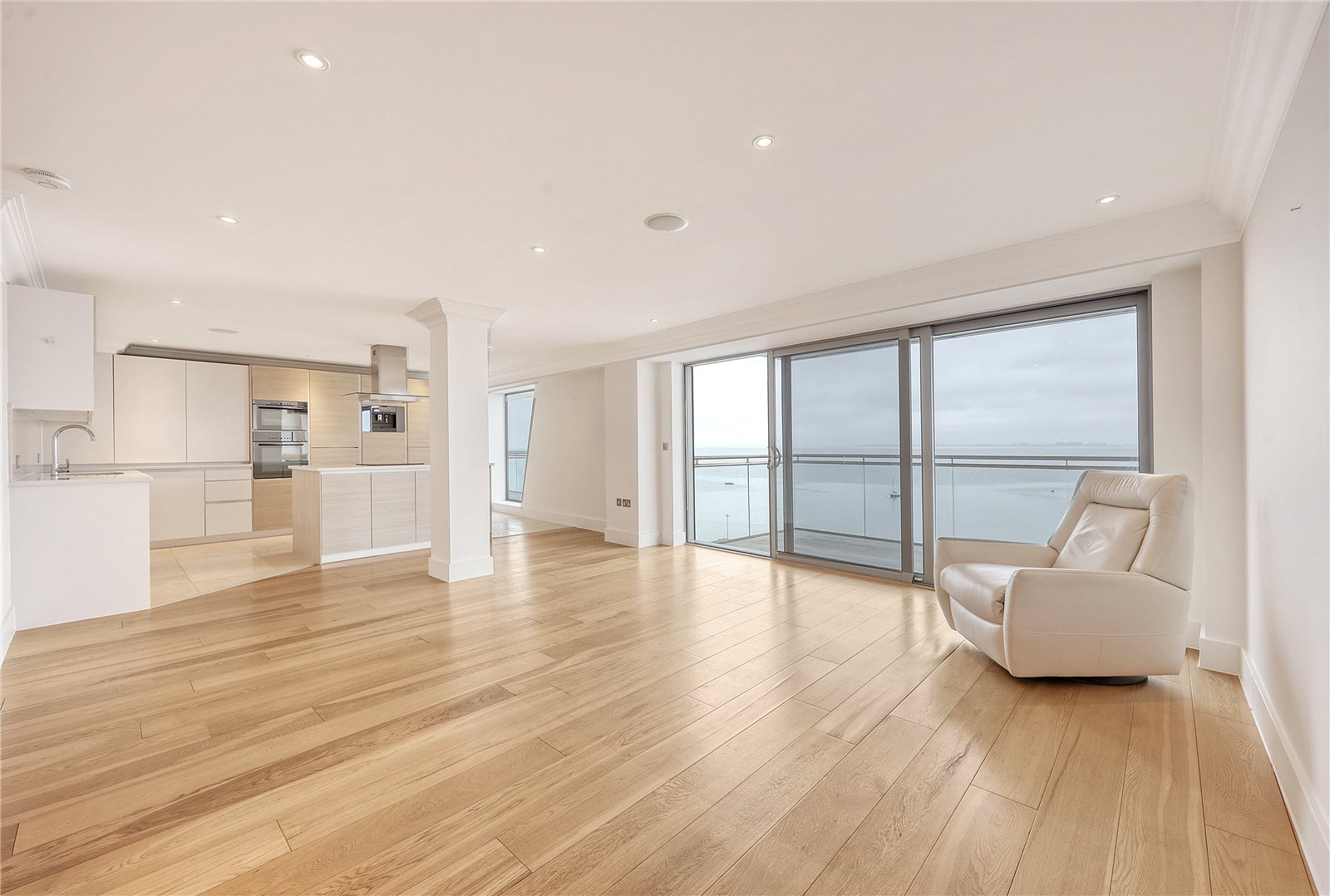 A spectacular fourth floor seafront apartment in this prestigious Concierge development with panoramic estuary views, high specification fittings, secure parking, resident's gym, 'Paul Newman' fitted kitchen with Swiss integrated appliances, integrated sound system & concierge lounge.