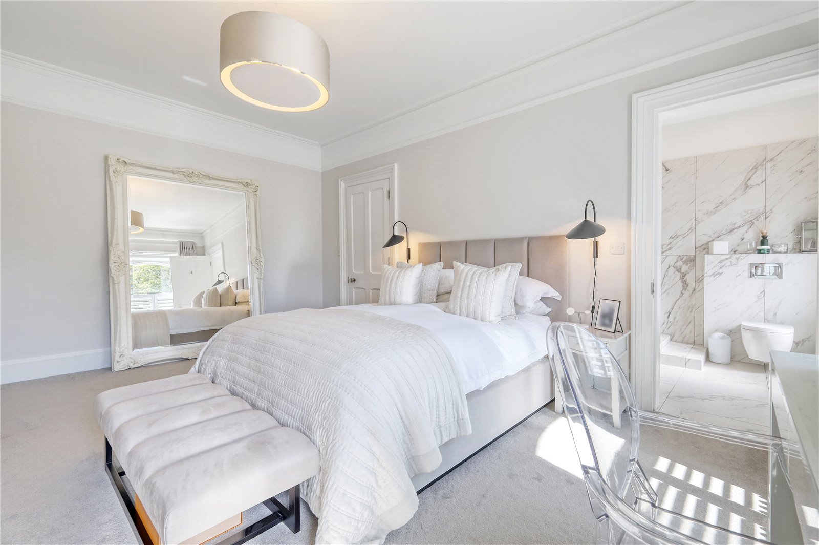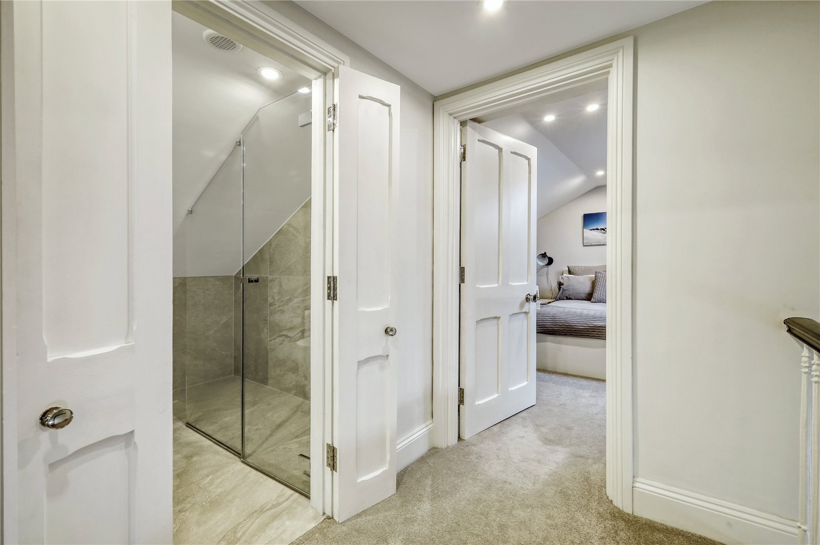 The first floor offers an expansive split-level landing, leading to four double bedrooms. Two bedrooms feature high-specification ensuites, while a hotel-inspired dual-aspect four-piece family bathroom suite serves the remaining. A further staircase leads to the top floor, where you’ll find two additional double bedrooms and a shower room.