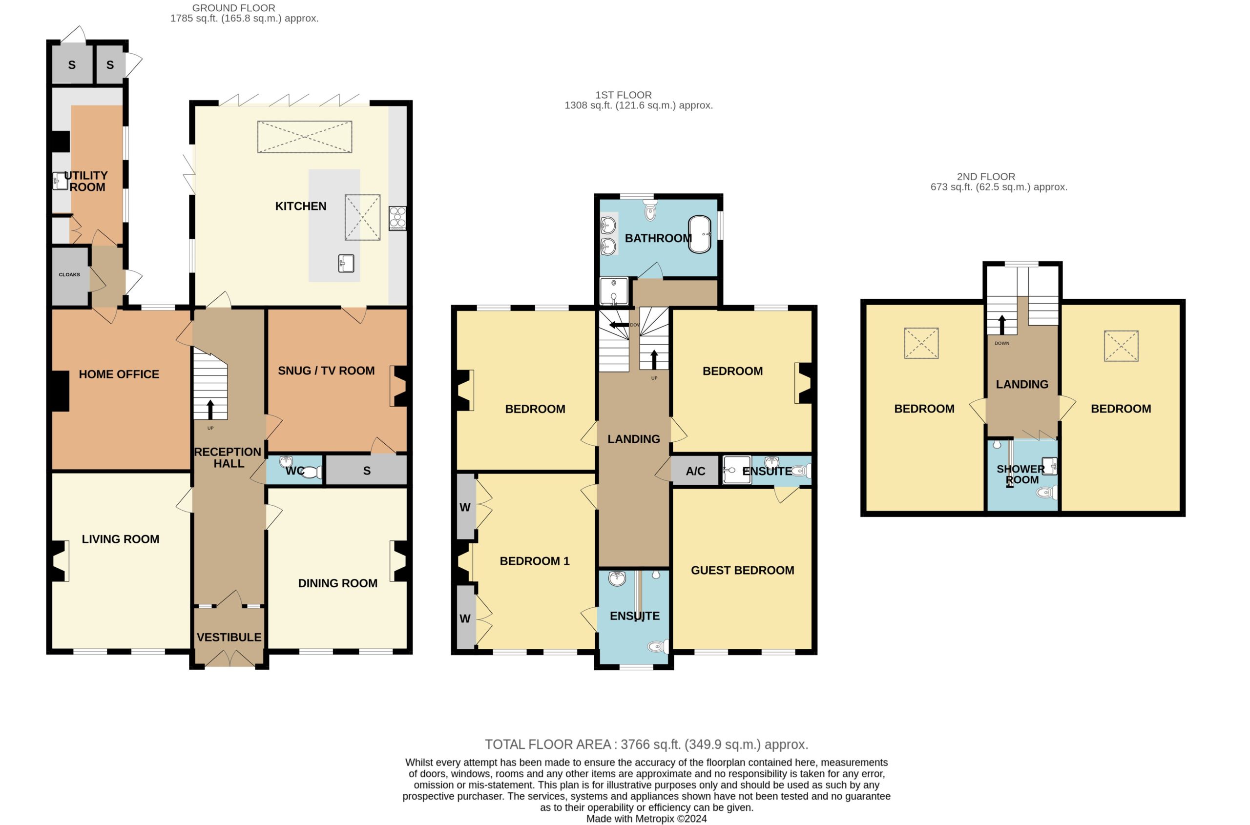 The ground floor includes four reception rooms: a formal Living Room and an elegant Dining Room, both overlooking the cricket green; a cosy TV room/snug; and a separate Home Office. A sublime open-plan Kitchen/Family Room, which boasts almost full-width bi-fold doors opening onto a fully landscaped garden. This outdoor space features a stunning heated swimming pool, a pool house with a bar area, ample entertaining space, and mezzanine levels. There is also the addition of a spacious Utility Room and a Guest Cloakroom/WC.
