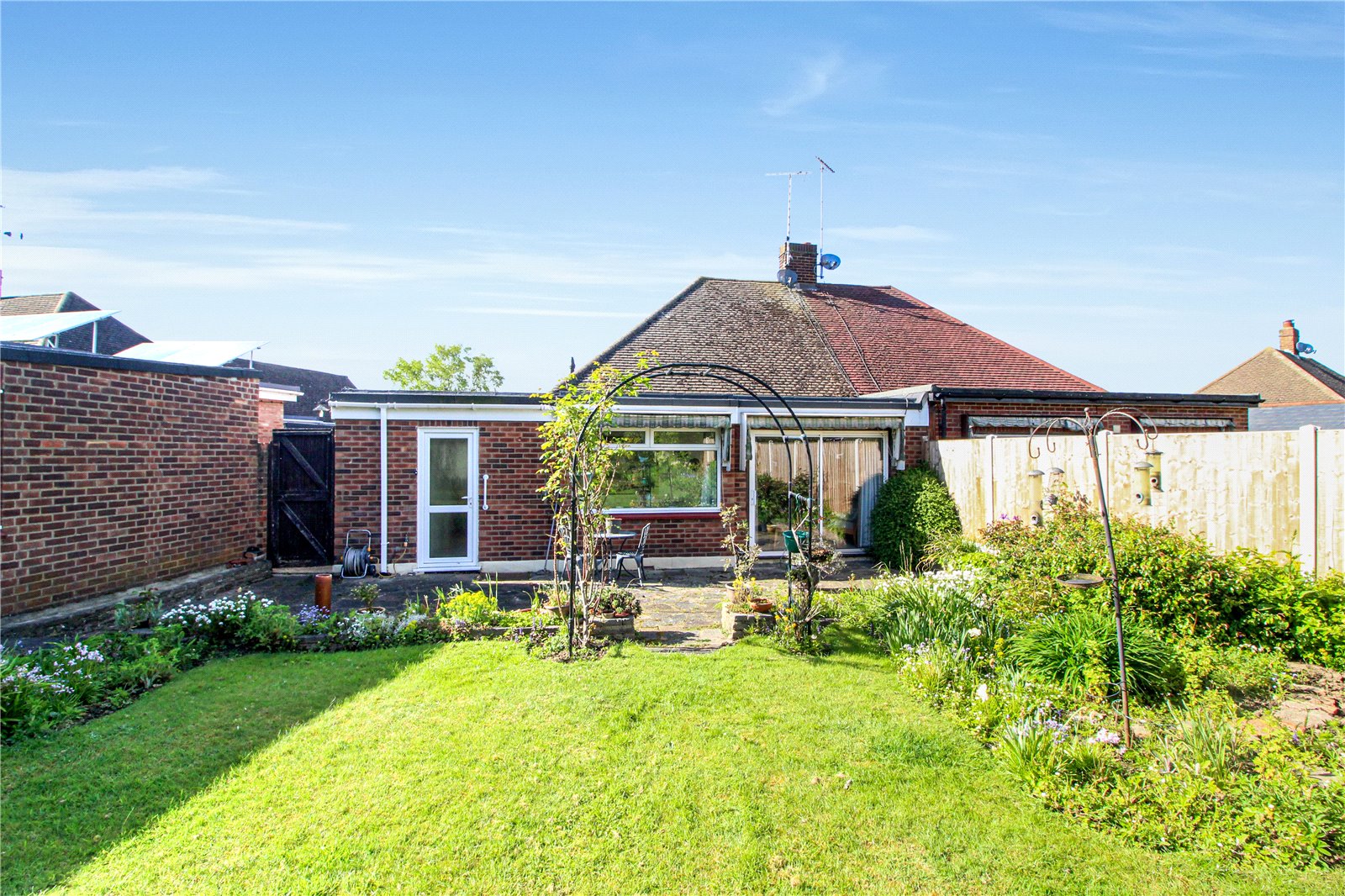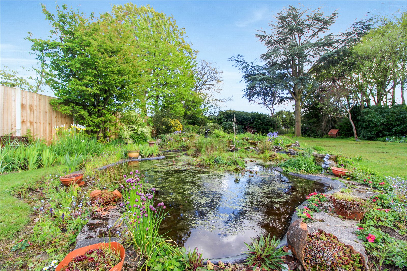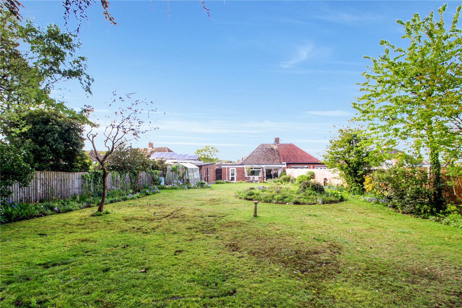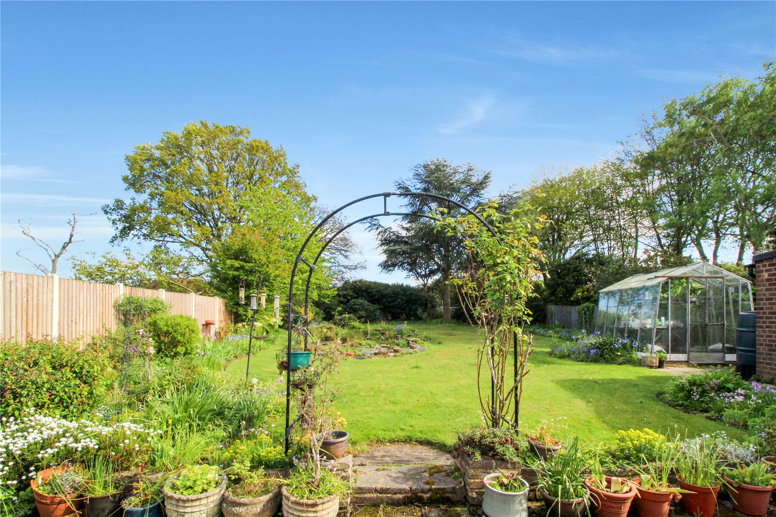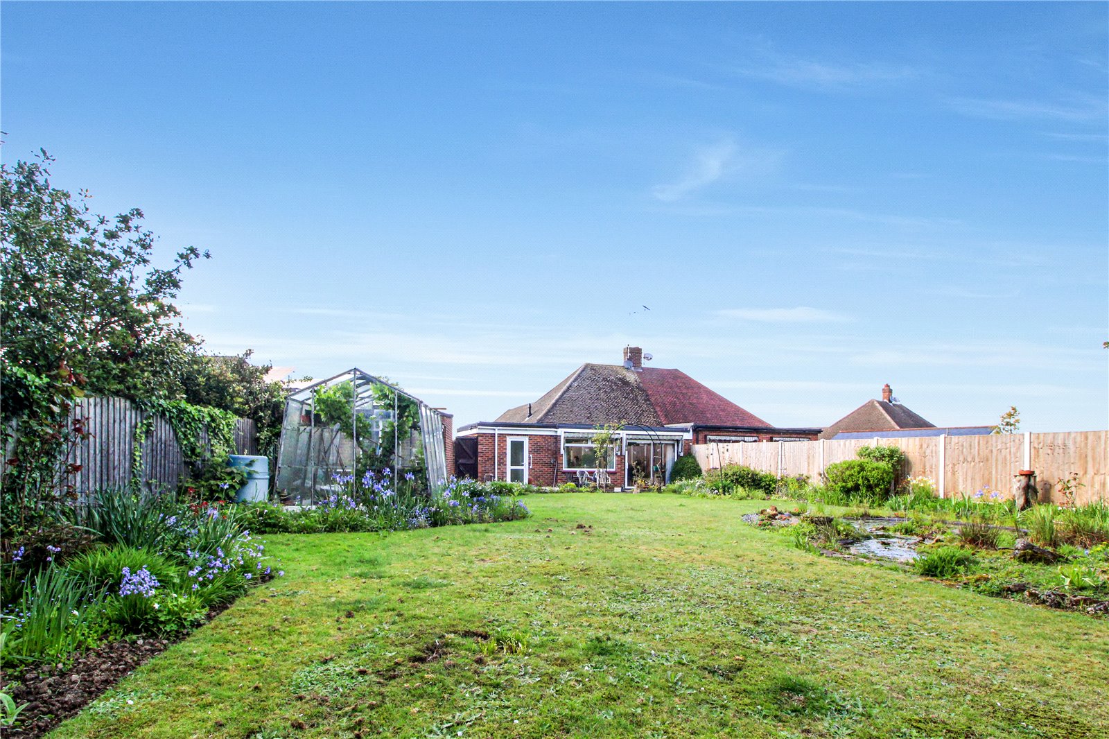 Measuring approximately 200ft, commencing from the living/ dining room and inner lobby the wedge-shaped rear garden is bordered, has a crazy paved patio area and is predominantly laid to lawn with a vast array of trees and shrubs. The extensive garden further benefits from a pond, rockery, greenhouse, garage, workshop and side access to the front garden. Fenced to all boundaries. Personal door into the