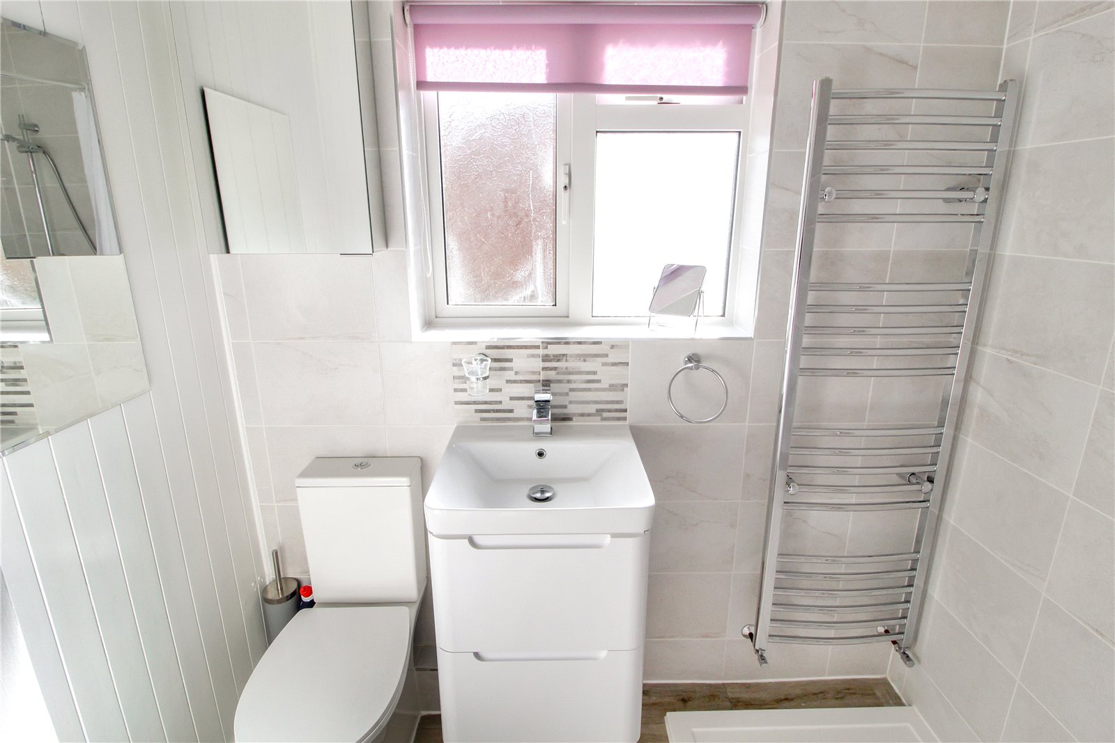 uPVC double glazed obscure window to side.