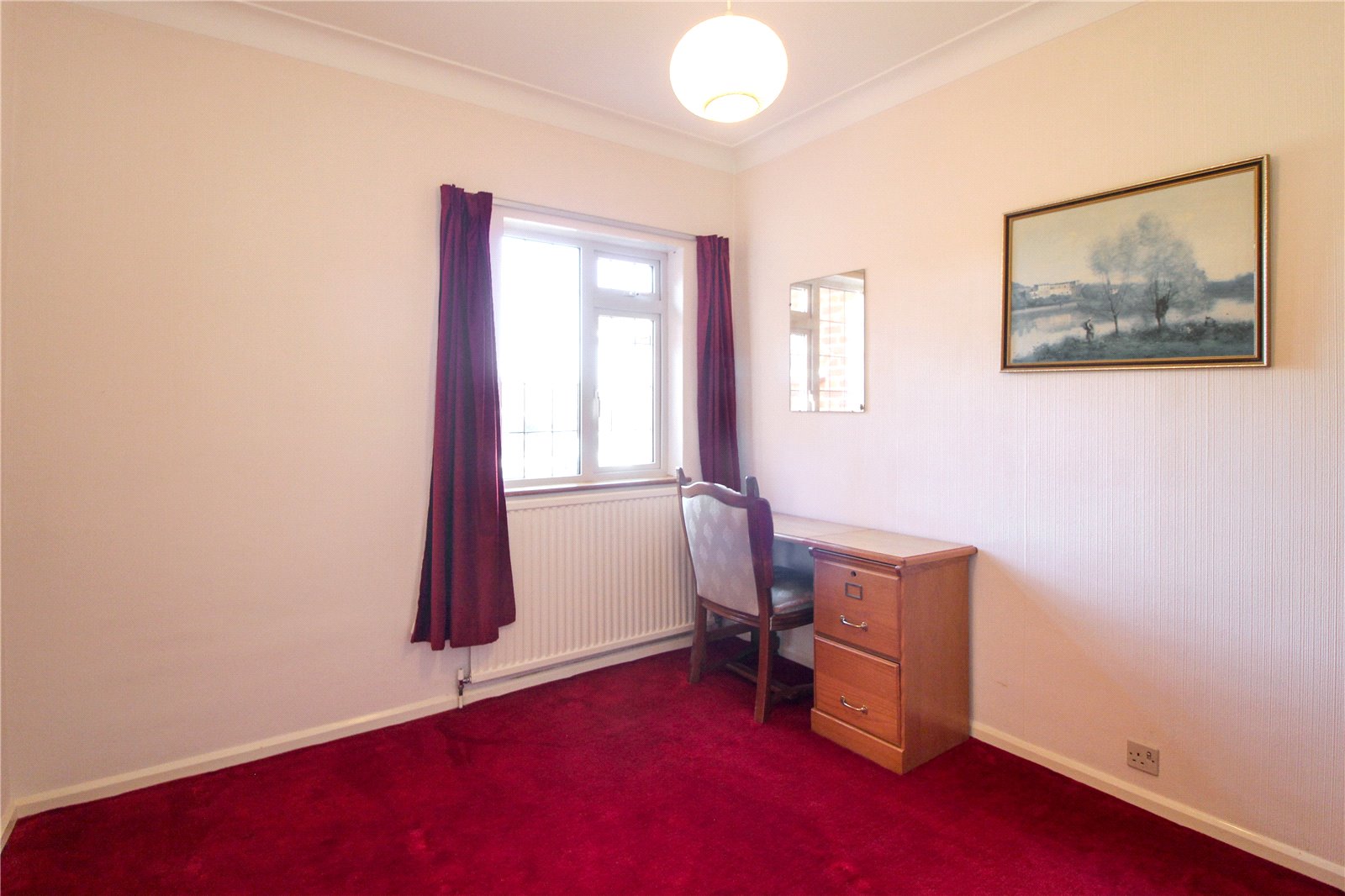 Carpet to floor. Skirting. Radiator. Coving to ceiling. Ceiling light.
