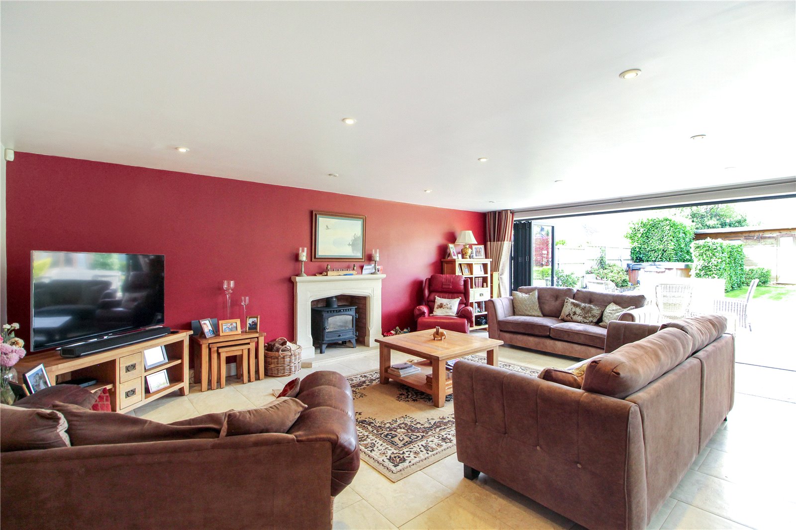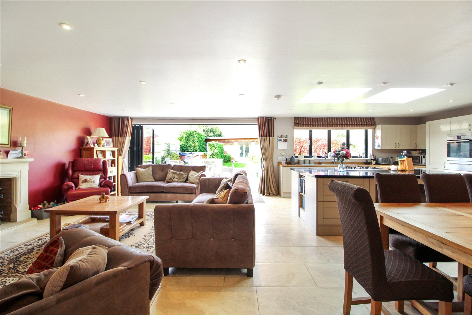 Impressive, spacious open plan living with double glazed window to rear aspect and additional double glazed tri-folding doors leading out onto the rear garden.