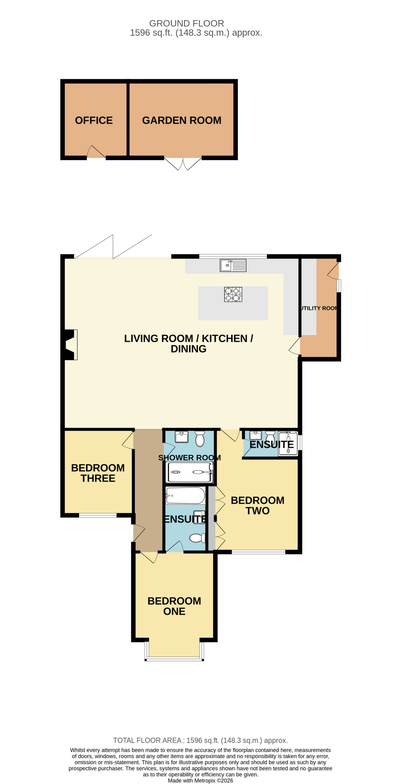 Split into and office space and garden room with double glazed windows and doors to front. Power and WIFI connection.