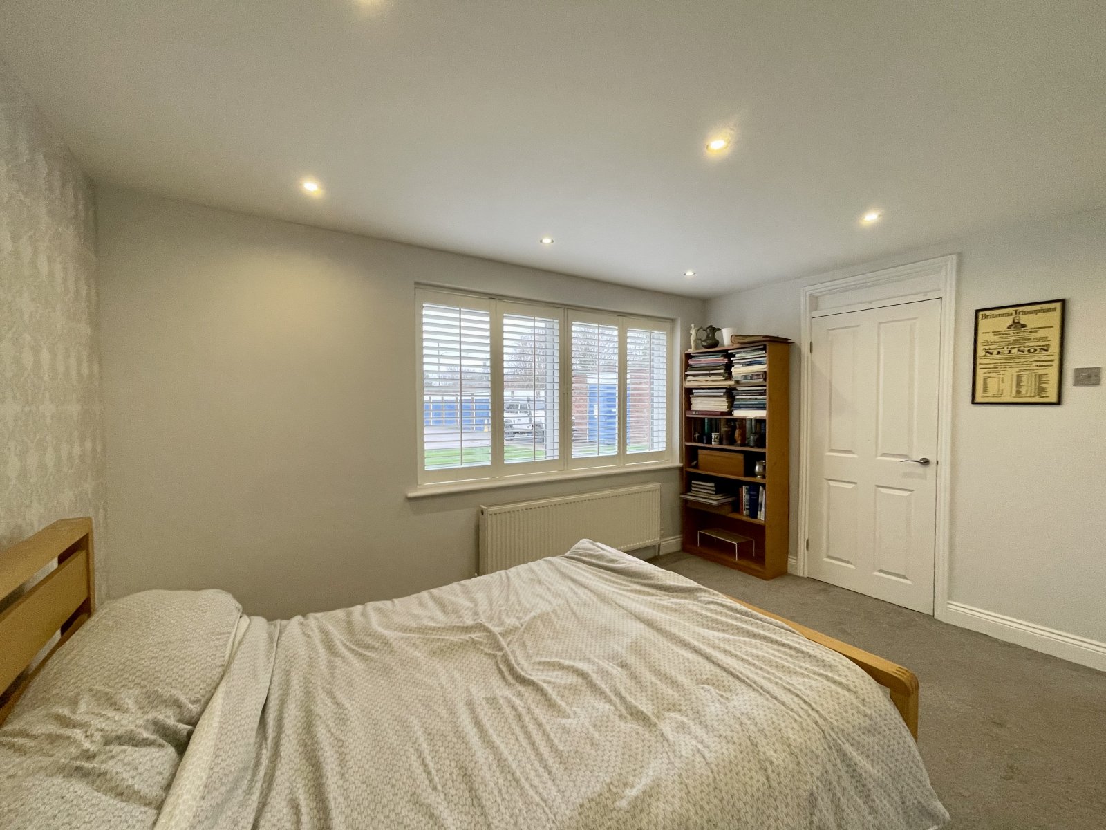 Large UPVC double glazed window to rear with fitted wooden shutters. Wall mounted radiator. High level skirting. Fitted wardrobe/storage unit. Smooth plastered ceilings.