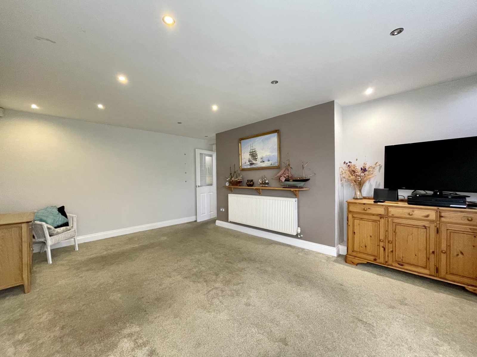 UPVC double glazed window to rear. Wall mounted radiator. High level skirting. Fitted/storage unit. Smooth plastered ceilings with recessed LED lighting.