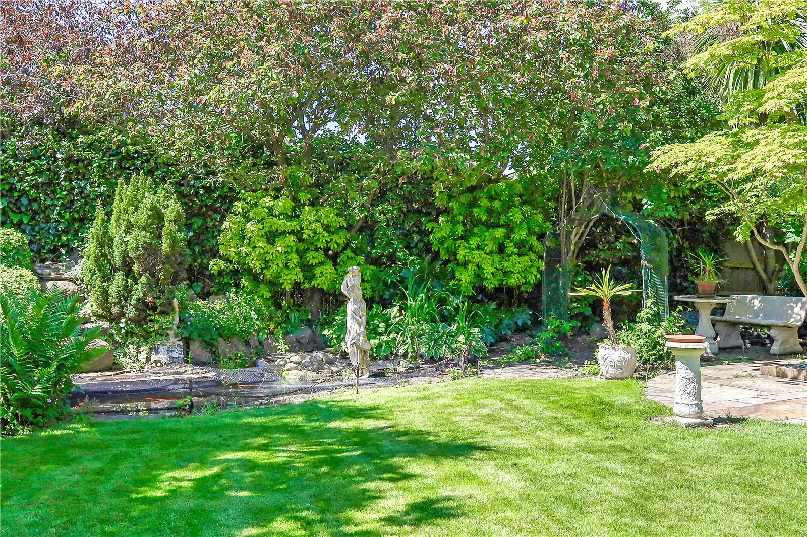 The property benefits from a beautifully established West backing rear garden which is nicely secluded, laid mainly to lawn with sculptured edges. Extensive patio areas and granite set path. Fishpond with rockery. Mature trees and shrubs. Aluminium framed greenhouse. Timber garden shed. Brick built BBQ area with tiled pitched roof. Large block work South facing courtyard garden with sun loggia. Side entrance. Cold water tap. Outside lighting.