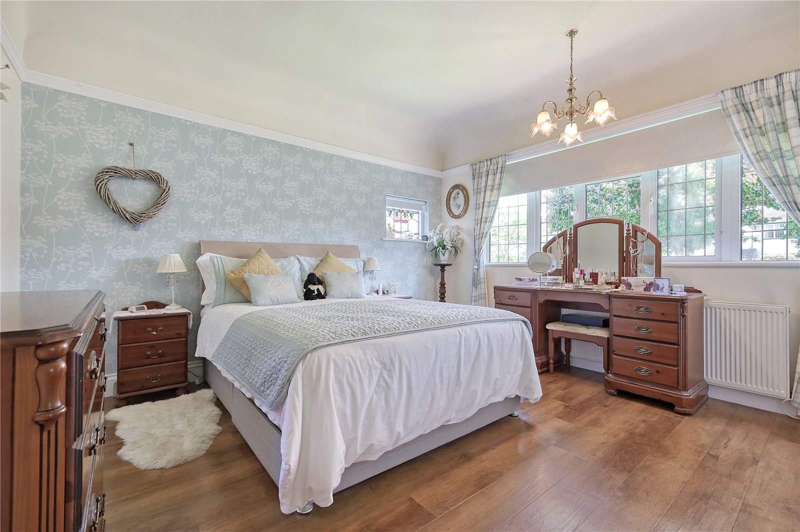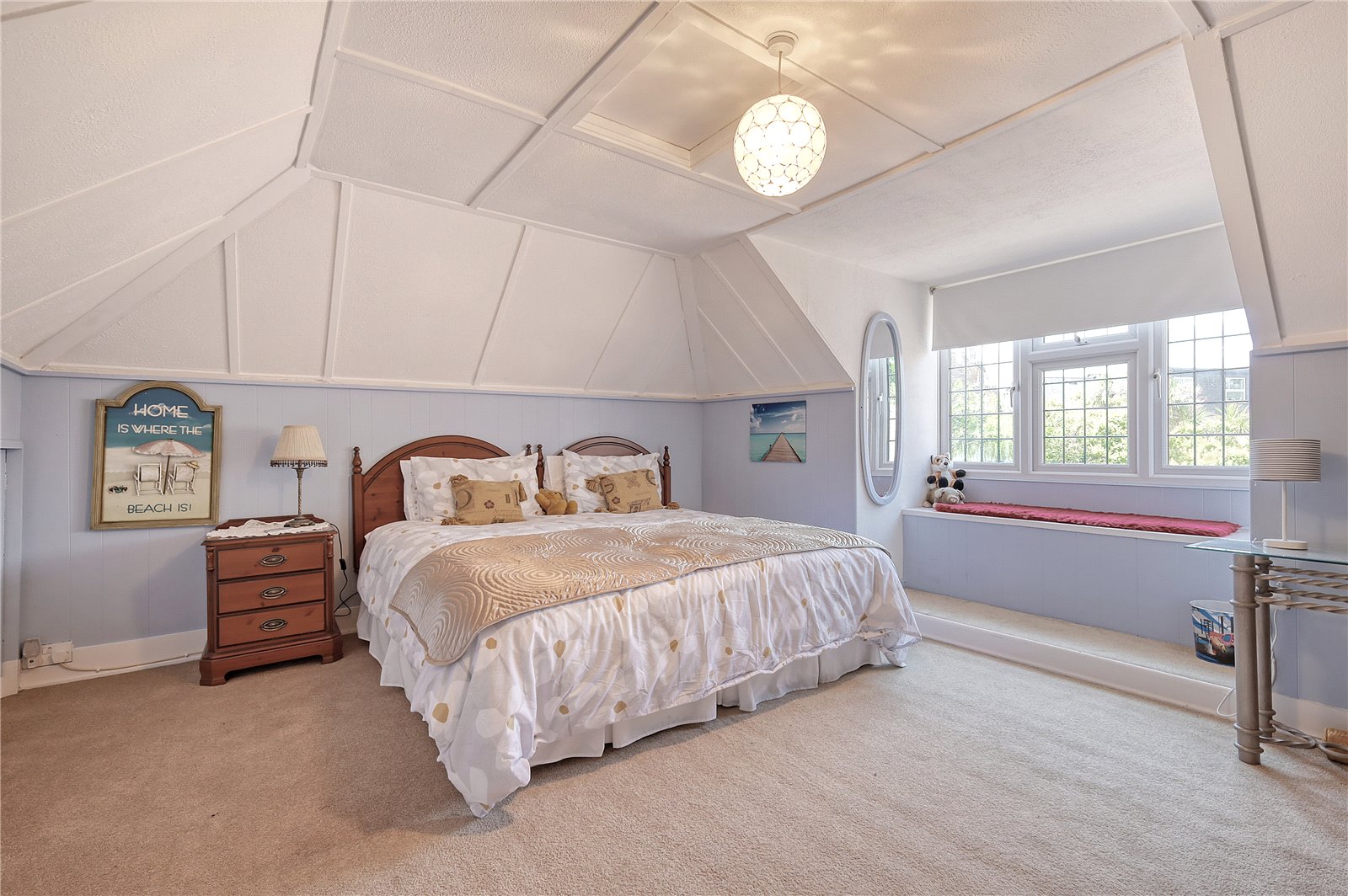plus storage cupboard. This bright and spacious principal bedroom suite enjoys a dual aspect with pretty stained glass leaded light window to side and wide double glazed Oriel bay window to front. Radiator. Attractive Oak wood flooring. Picture rail. Door to: