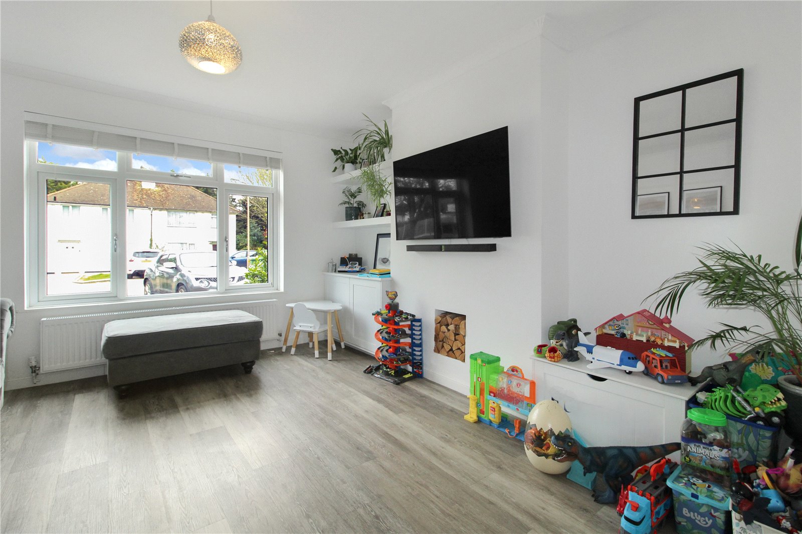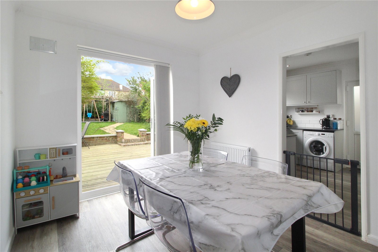 uPVC double glazed French doors to rear out to garden with fitted blinds to remain. LVT wood-effect flooring. Skirting. Radiator. Chrome light switch and sockets. Smooth plastered walls. Coving to smooth plastered ceiling and ceiling light. Archway into Living Room.