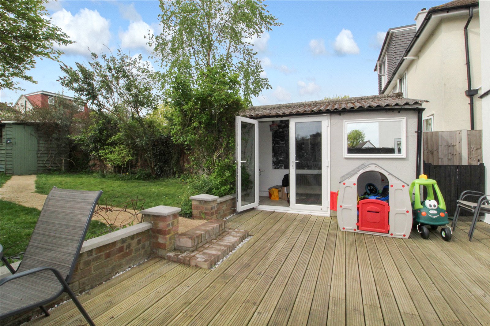 Measuring approximately 56' in depth and commencing from the Dining Area with an expanse of decking providing access to the Outbuilding/ Home Office, rear of garden and side of the property with outside water tap leading towards the front of the property through secure side gate. Beyond the decking, the West-Facing garden is predominantly laid to lawn and fenced to all boundaries with a variety of mature shrubs and trees to the flank borders with a paved path leading to the rear boundary with a section of loose stone chippings and garden shed to remain.