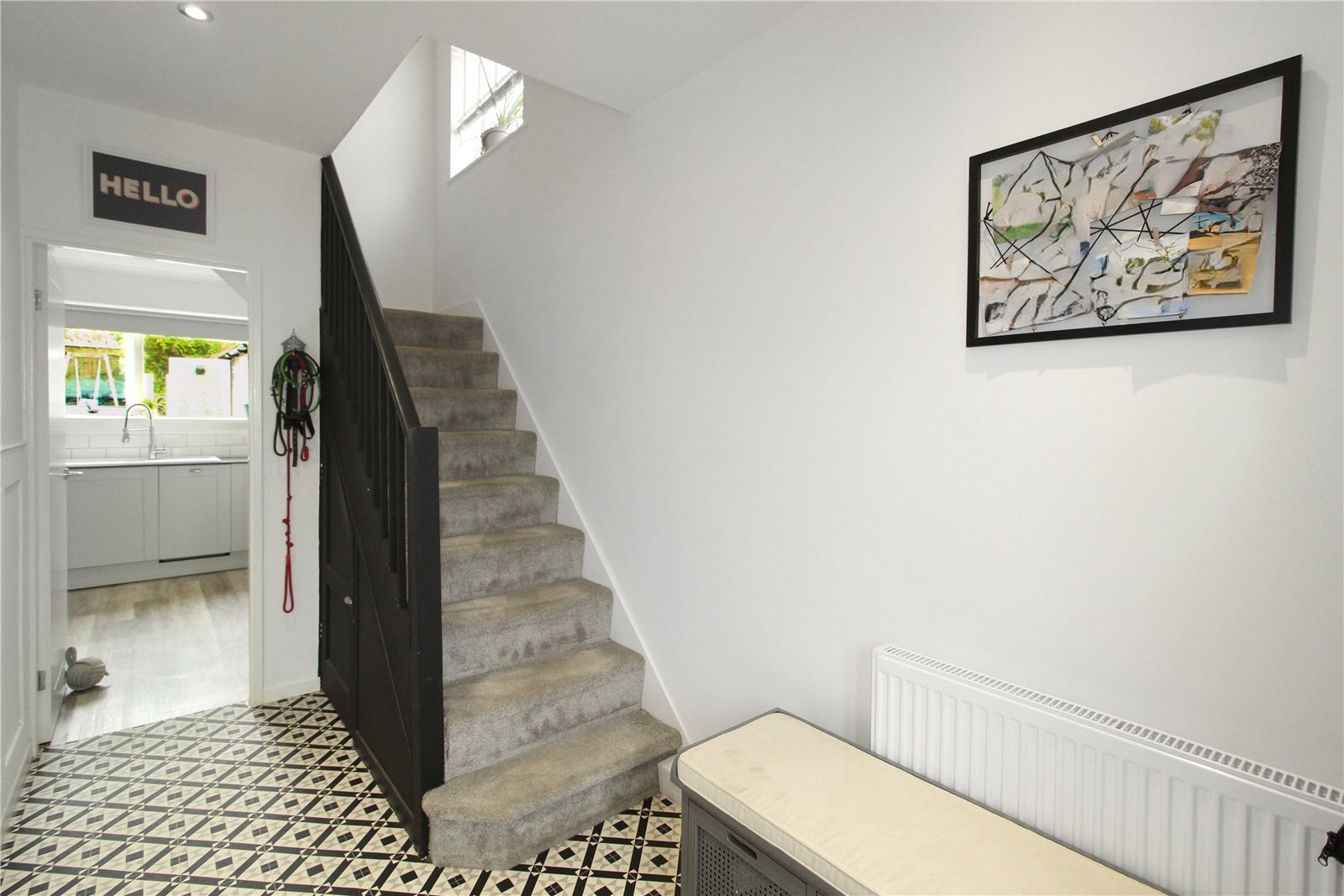 uPVC composite door with obscure double glazed insert into Entrance Hall. Mosaic tile-effect vinyl flooring. Radiator. Smooth plastered walls. Feature panelling to half height. Chrome light switch. Panelled door to kitchen. Smooth plastered ceiling with recessed spotlights and smoke alarm. Carpet to stars to first floor landing.