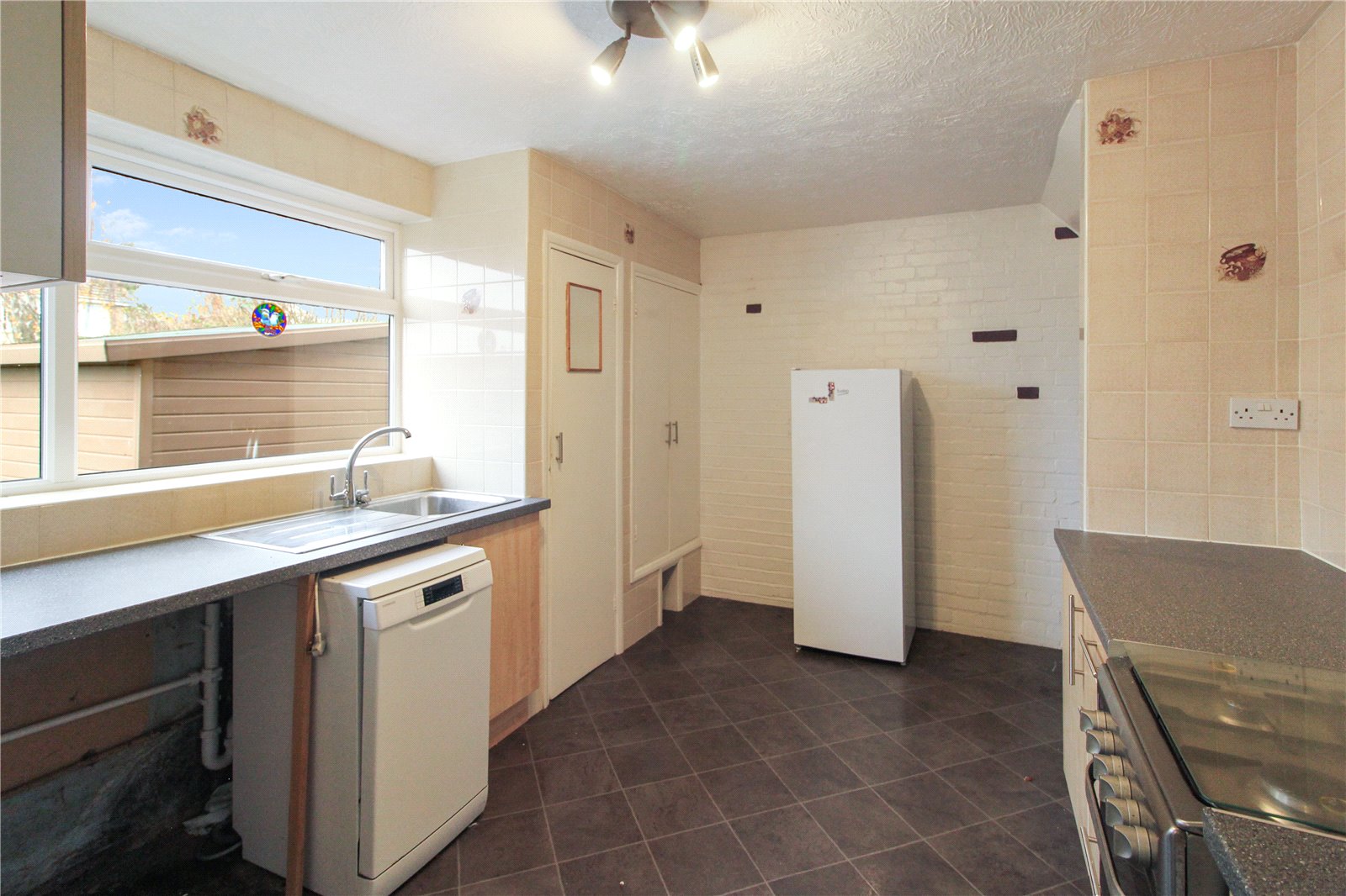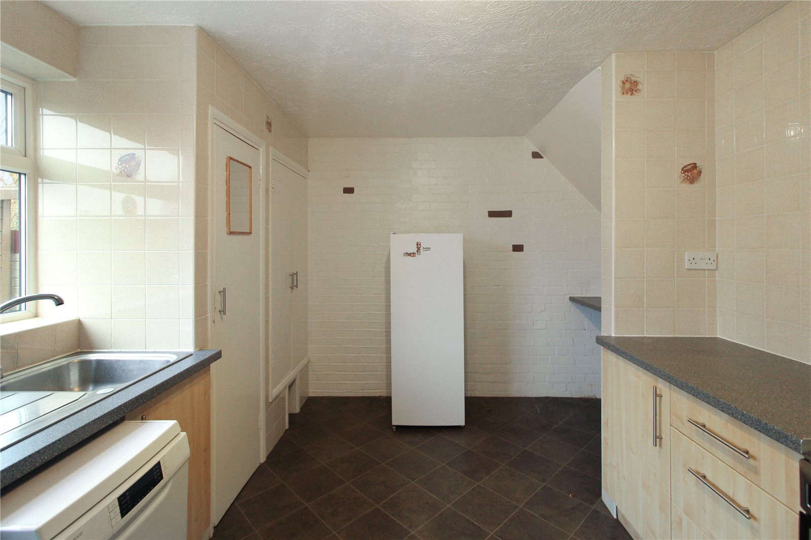 UPVC double glazed window to rear aspect with view of the garden. Range of eye and base level units with integrated stainless steel sink with drainer and mixer tap. Sace for under counter utilities and oven. Two useful storage cupboards. Lino to floor, partially tiled walls, completed with a single ceiling light