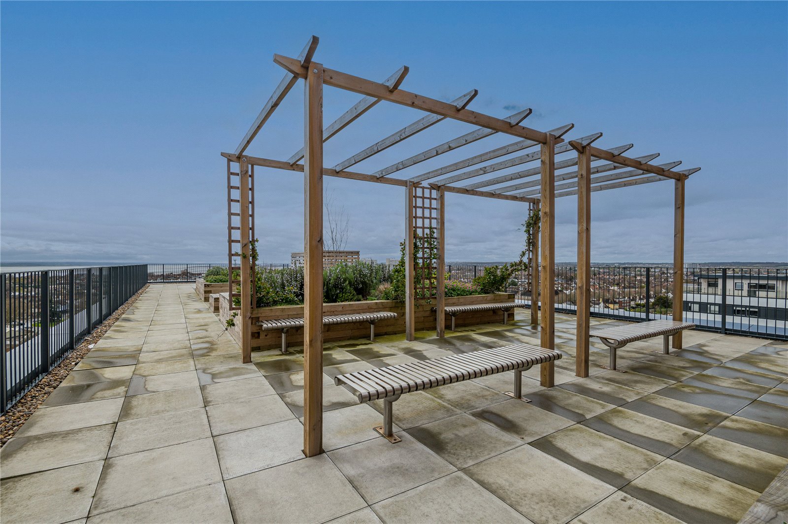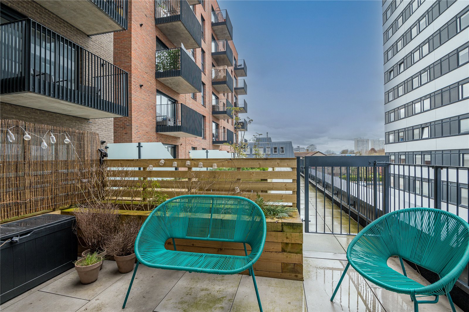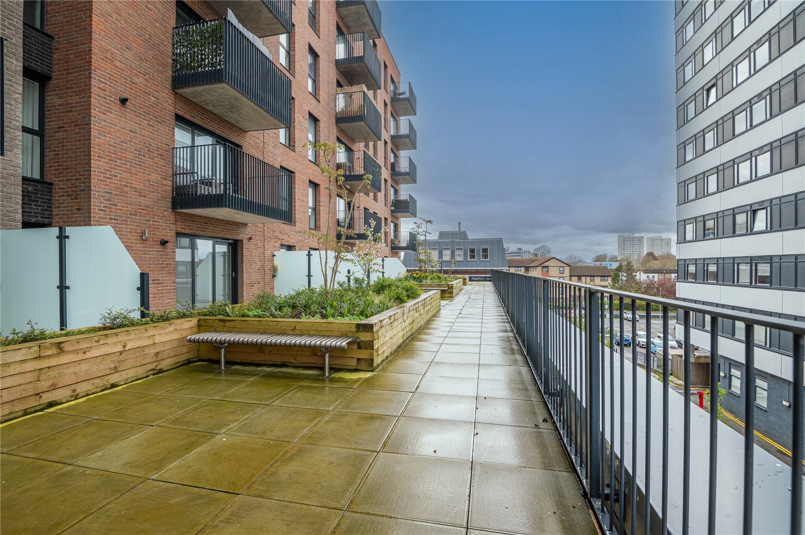 The property benefits from a private section of terrace to rear with porcelain tiled floors. Raised wooden planter. Metal gate giving access to communal rear terrace plus further communal outside space.
