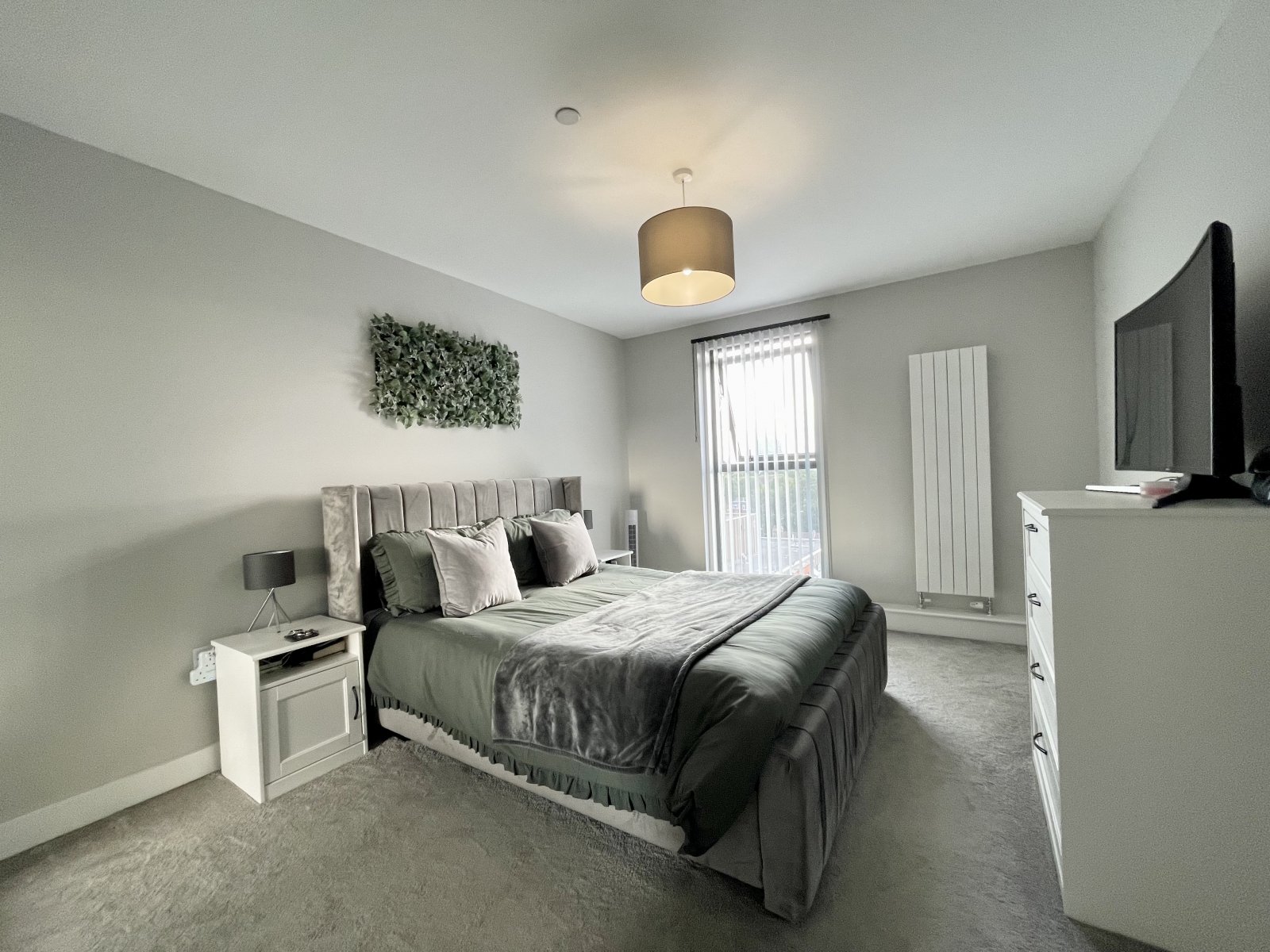 maximum. Large full height West facing double glazed window. High level designer radiator. High level skirting. Smooth plastered ceiling.