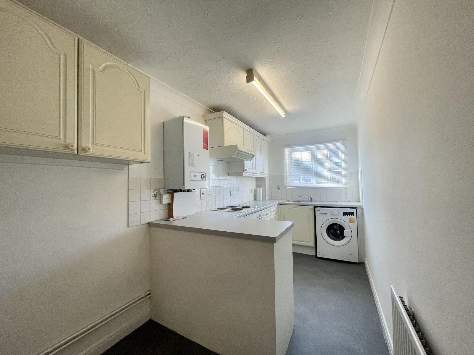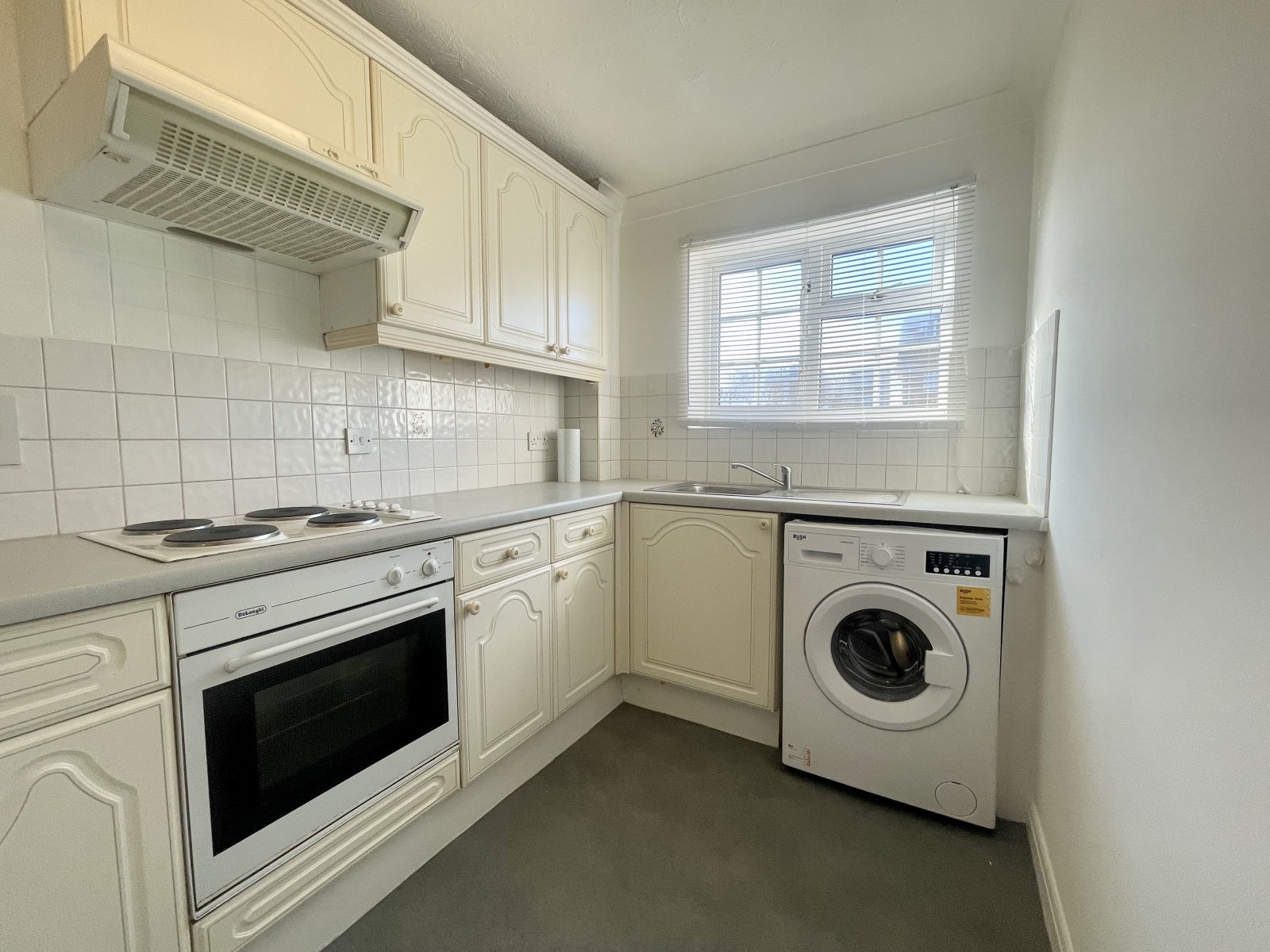 UPVC double glazed window to front. Kitchen is fitted with a range of base and eye level units incorporating a rolled edge working surface, inset stainless steel sink with mixer tap and drainer unit. Inset four burner electric hob with extractor hood above. Integrated electric fan assist oven. Space and plumbing for washing machine, existing to remain. Fully tiled splashback. Wall mounted Glowworm gas fired boiler. Wall mounted radiator. Space for dining table. Vinyl flooring. Coved cornice to ceiling.