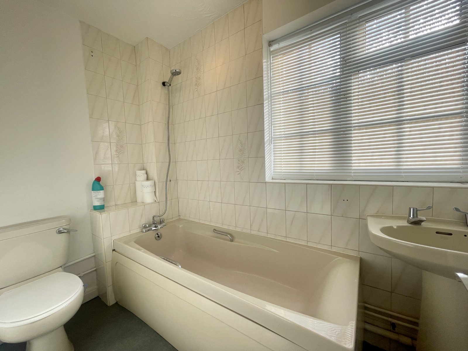 UPVC double obscured glazed window to side. Bathroom is fitted with a three piece suite comprising low flush WC, pedestal wash hand basin and panelled bath with mixer tap, overhead shower attachment. Vinyl flooring. Part tiled walls. Wall mounted electric shaving point.