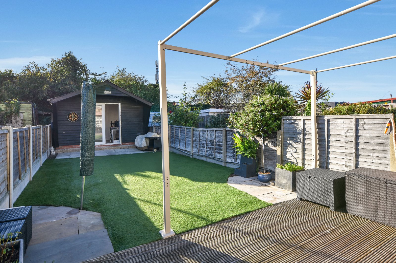 A delightful west-facing rear garden extending to approximately 55 feet in depth. The space features a timber decked patio area with the remainder laid with high-quality artificial lawn for ease of maintenance. Additional benefits include external power sockets and an outside water tap. The garden is enclosed by low-level fencing and offers gated shared side access with the neighbouring property.