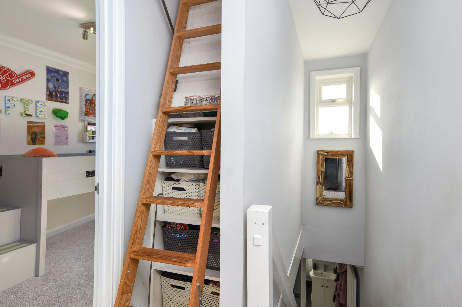 High level uPVC double glazed window to stairwell. Panelled doors to Bedrooms. Access to loft room via pull down ladder. Smooth plastered ceiling.