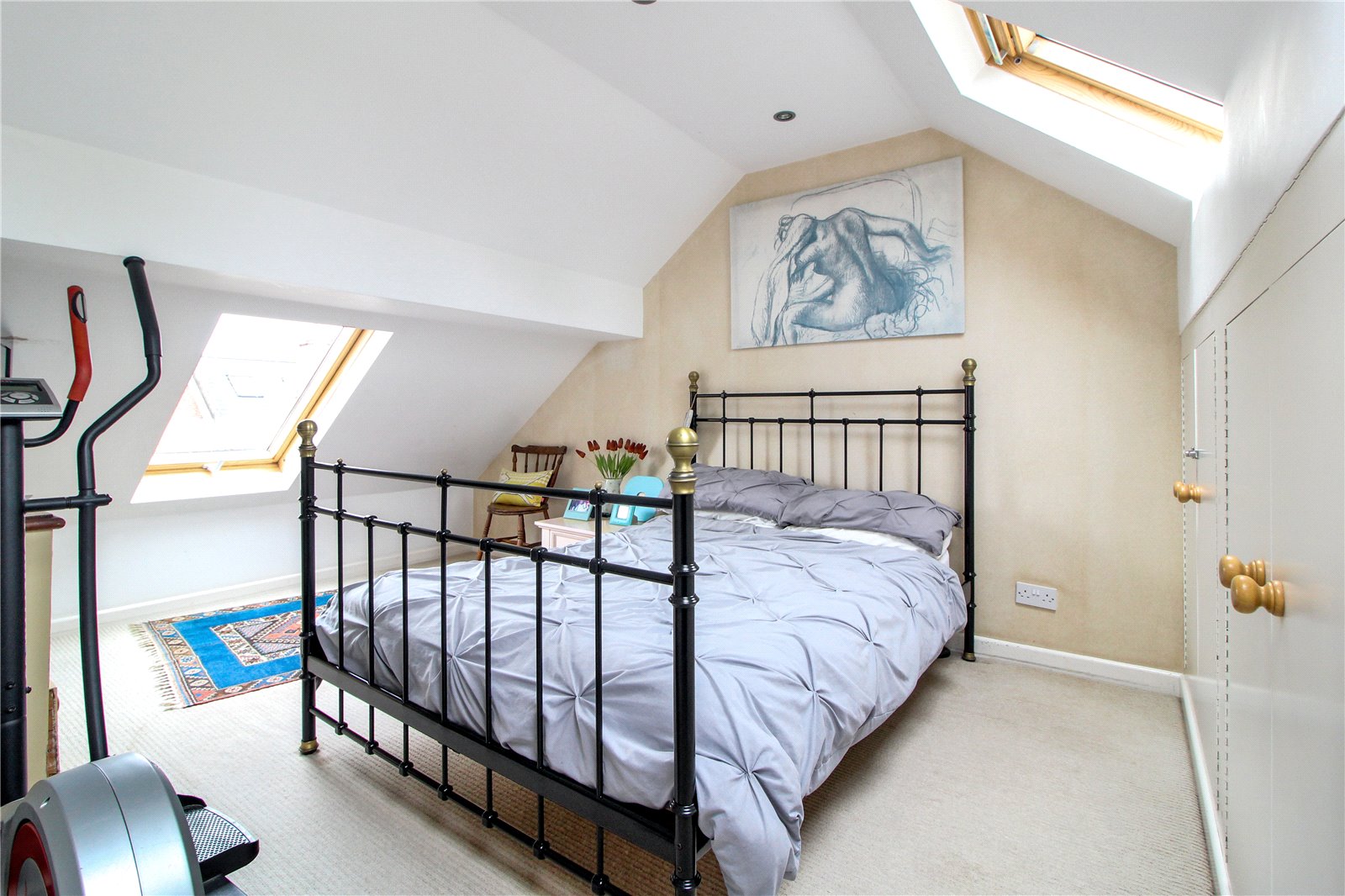 Double bedroom with wooden flooring. Smooth walls and ceiling with ceiling light. Original fireplace and double-glazed window to front aspect.