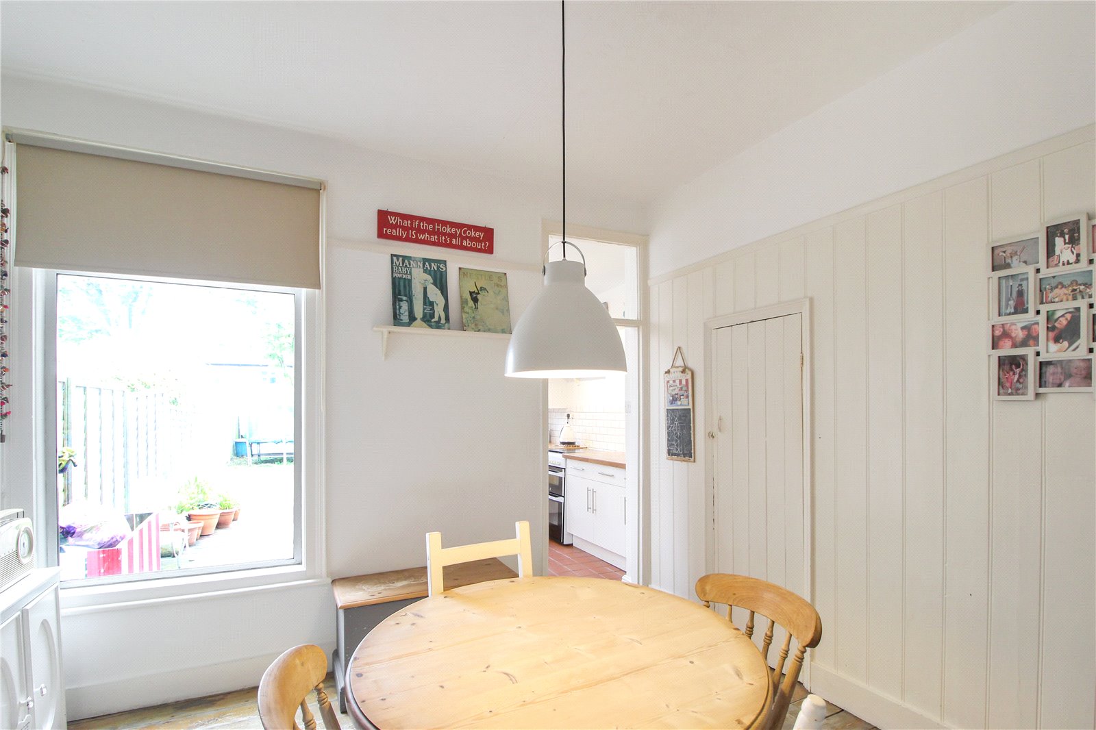 Generous size dining area with wooden flooring and double-glazed window to rear aspect. Original fireplace and under stair storage. Doorway leading to: