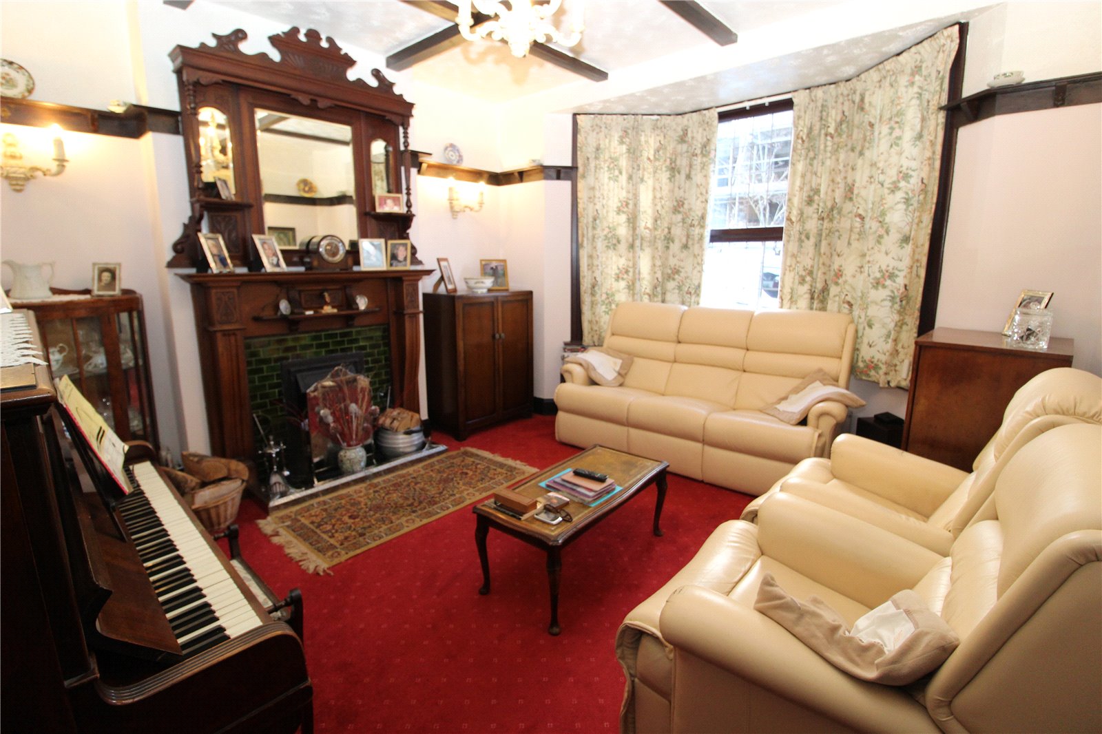 Coving to ceiling, decorative centre ceiling rose, two upvc lead light double glazed windows to front aspect, period style feature fireplace with tiled hearth, two radiators.