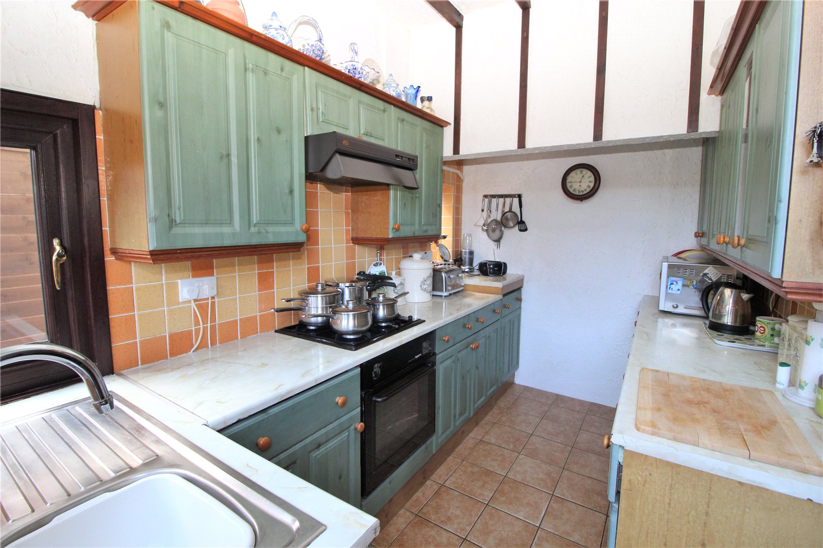Two upvc double glazed windows to side aspect and upvc double glazed window to rear aspect and upvc double glazed door to rear aspect. Kitchen comprising of rolled edge work surfaces, base cupboard and drawer units, matching wall units over, fitted oven with four ring gas hob, extractor hood over, integrated washing machine, integrated fridge. Tiling to splash backs and between units and tiling to floor.