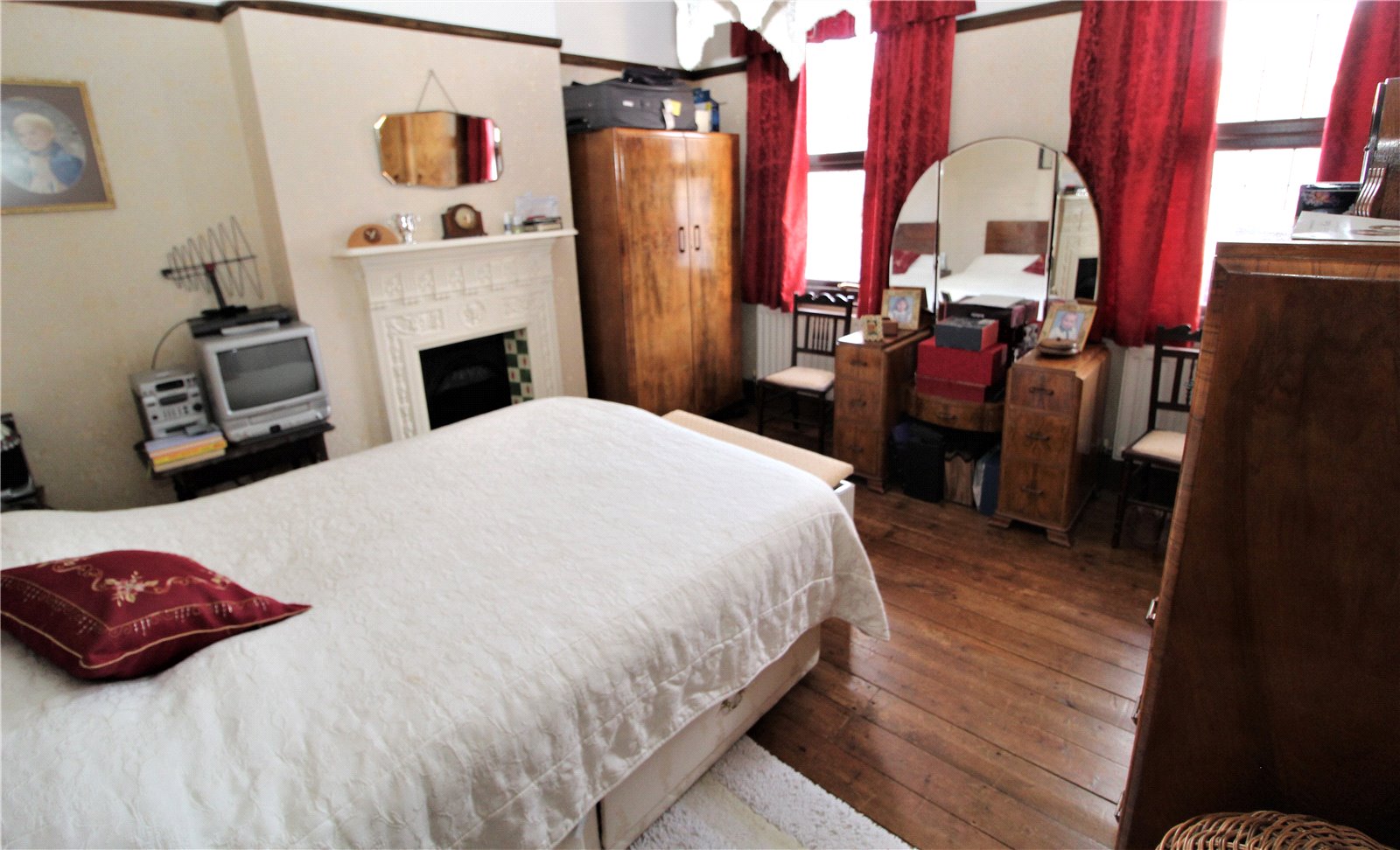 Smooth ceiling, picture rail, dado rail, built in cupboard, upvc double glazed bay window to rear aspect, period feature fireplace with tiled hearth, wooden surround and mantle.
