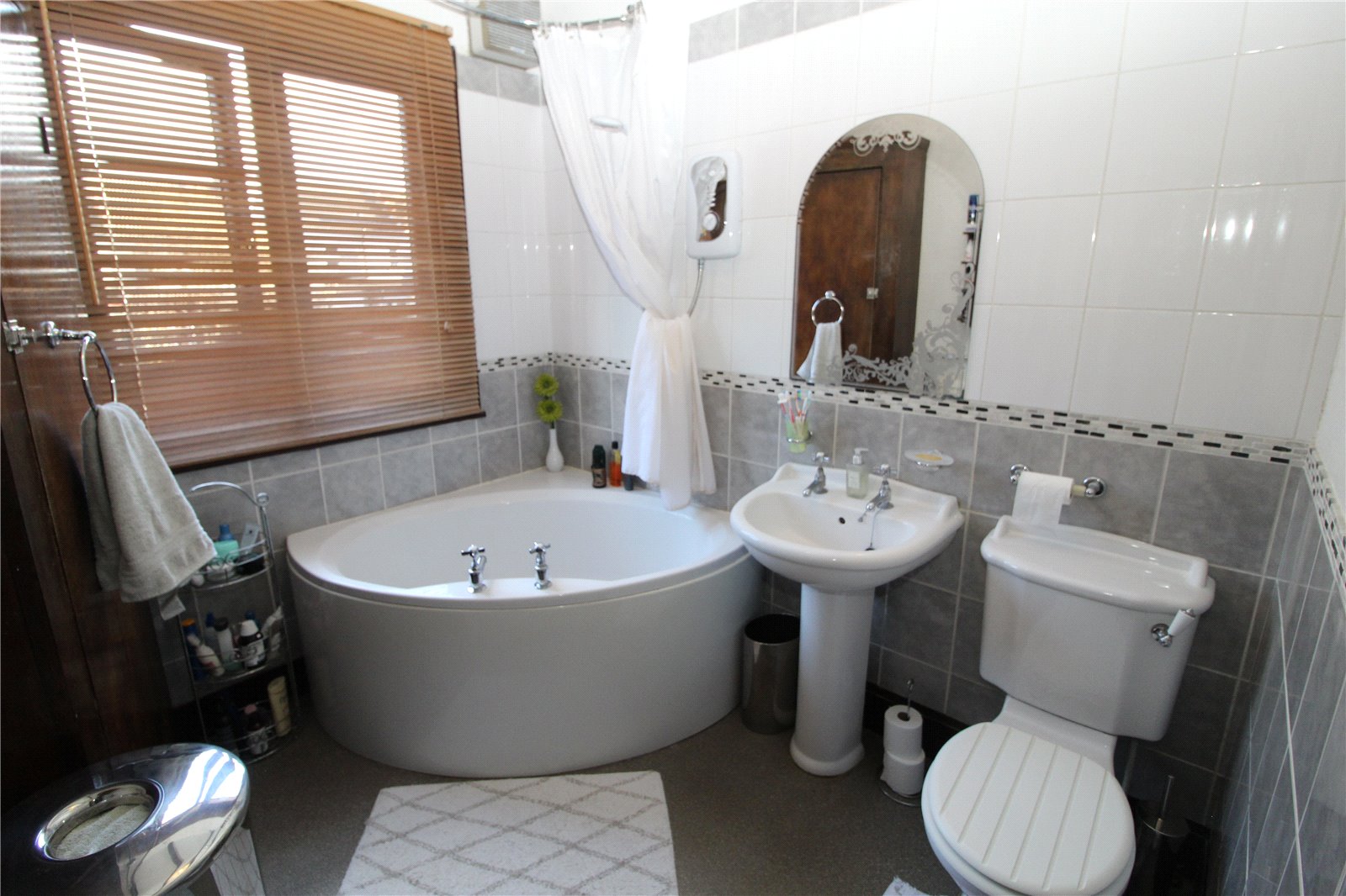 Decorative beams to ceiling, upvc double glazed window to rear aspect. Suite comprising of corner bath with electric wall mounted shower over, pedestal wash hand basin, close coupled wc, tiling to splash backs , towel radiator, vinyl flooring.