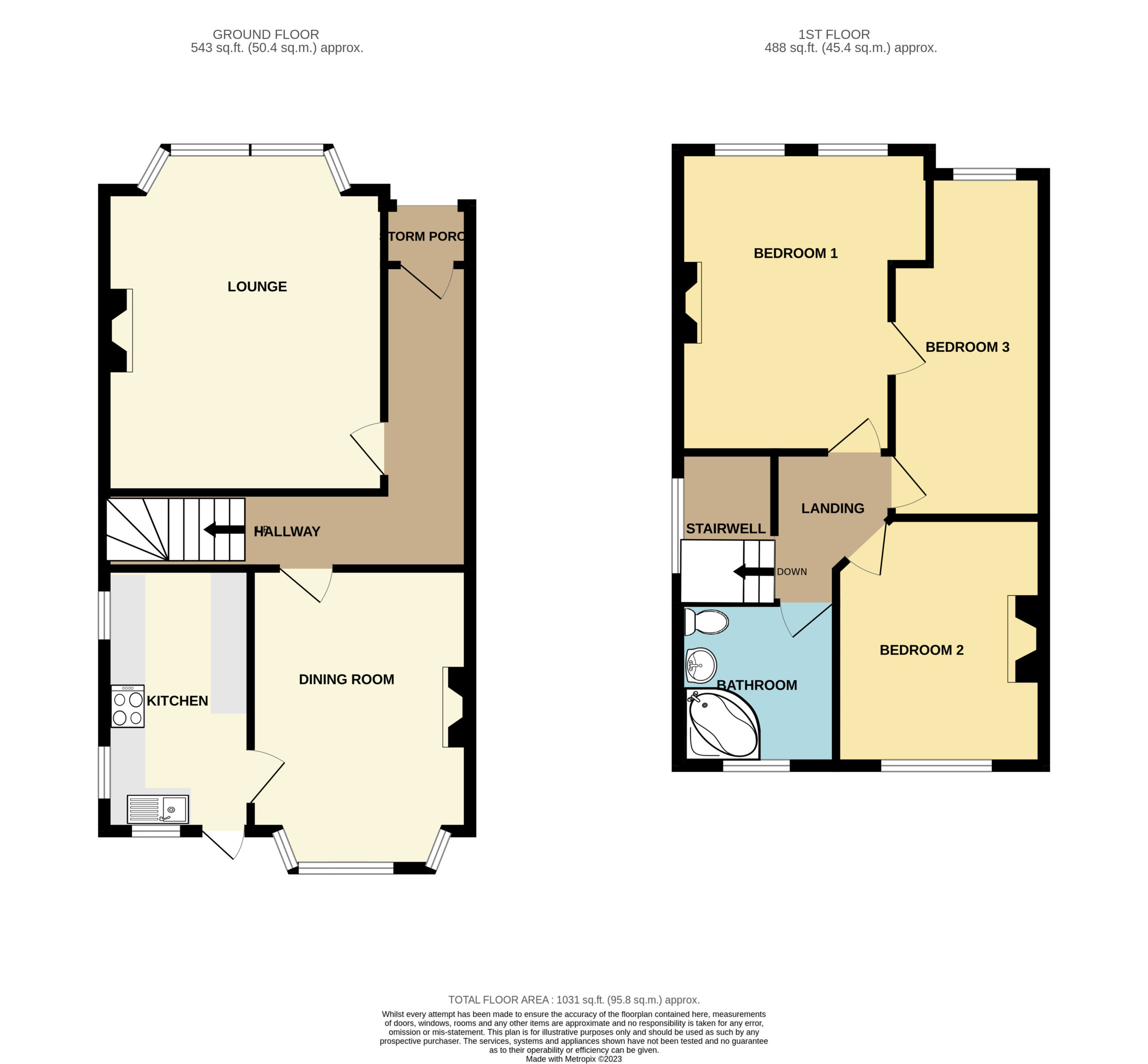 Bedroom 1 (3.78m x 3.4m + 0.6m reccess)