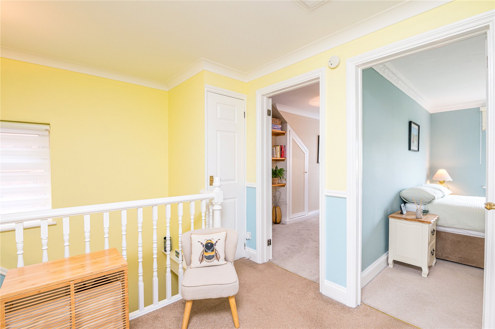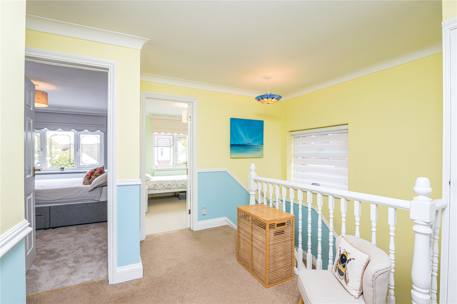 uPVC double glazed lead light window to the side aspect. Coved cornicing with smooth plastered walls and ceiling. Dado rail. Built-in storage cupboard. Airing cupboard housing immersion heater and shower pump. Loft access hatch with pull down ladder. ( loft is insulated, part boarded and has light connected. ) Six panelled doors leading to rooms.