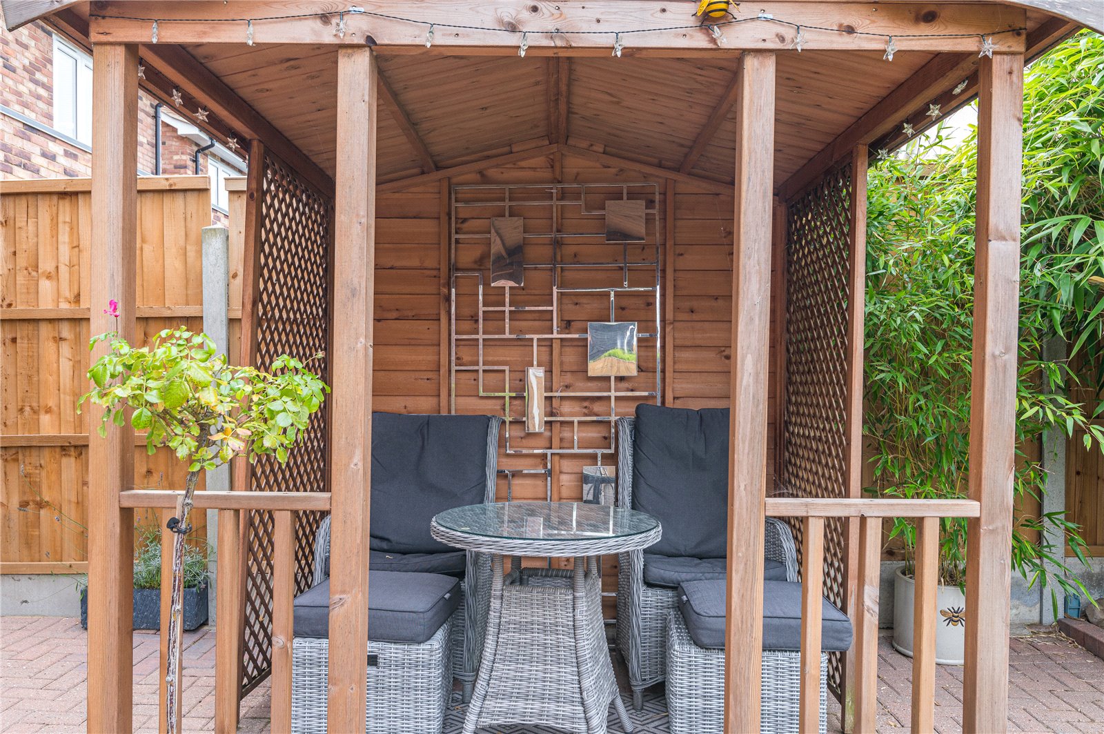 The landscaped rear garden measures an approx 50ft in length and commences with a block paved patio area with sweeping paved pathway to the side and woodchip path adjacent. The remainder of the garden is mainly laid to lawn with a selection of flower, tree and shrub borders. Fenced boundaries. External water tap. Side access gates. Storage shed to the rear and the gazebo are to remain. Maintenance free soffits, facias and guttering with inset recess spot lighting with motion sensor.
