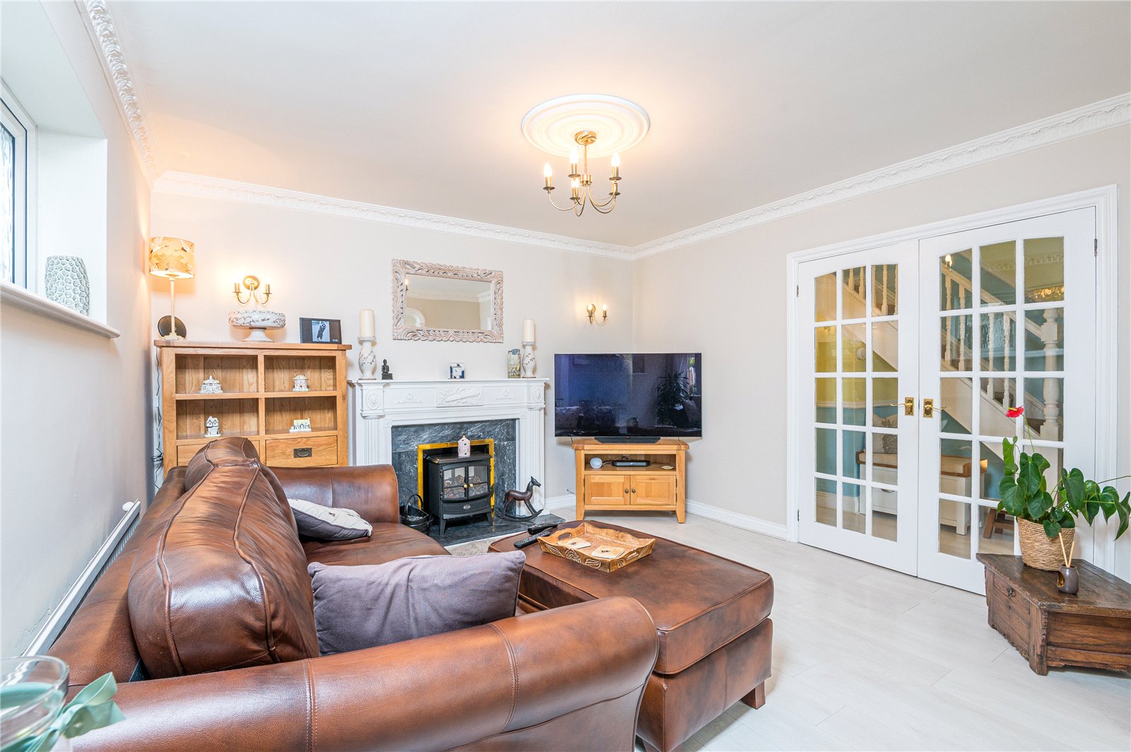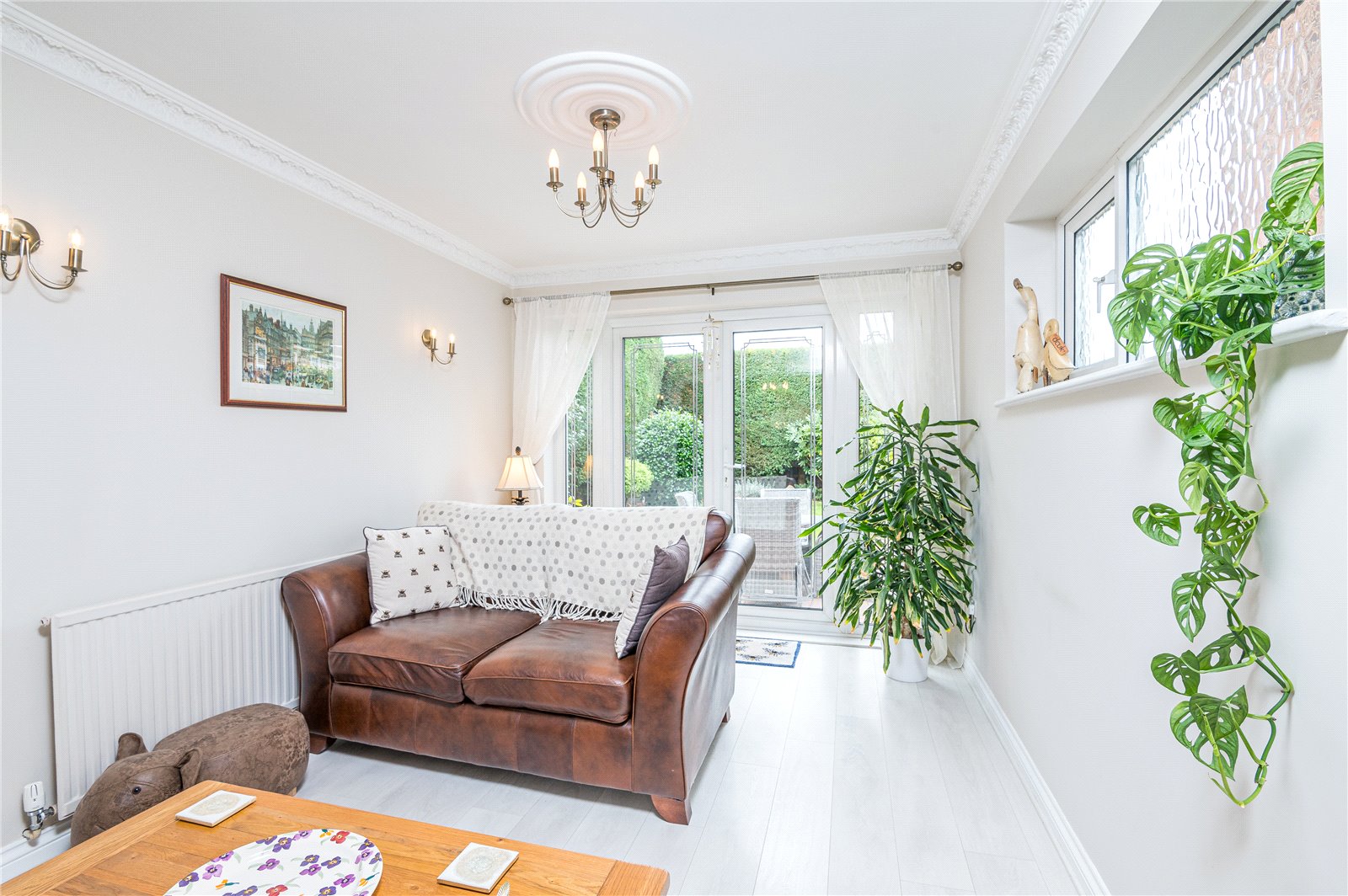 Two opaque uPVC double glazed windows to the side aspect. Upvc double glazed French doors to the rear aspect with windows adjacent giving access to the rear garden. Double doors to the side aspect give access to the entrance hall. Coved cornicing with smooth plastered walls and ceiling and two ornate ceiling roses. Two single banked radiators. Two television aerial points. Laminate wood effect flooring. Double dimmer switch. Four wall light points. Feature fireplace.