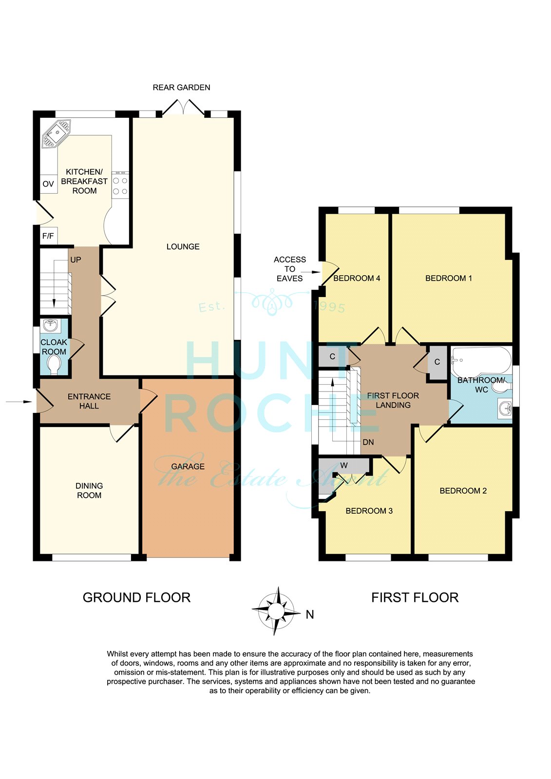 The landscaped rear garden measures an approx 50ft in length and commences with a block paved patio area with sweeping paved pathway to the side and woodchip path adjacent. The remainder of the garden is mainly laid to lawn with a selection of flower, tree and shrub borders. Fenced boundaries. External water tap. Side access gates. Storage shed to the rear and the gazebo are to remain. Maintenance free soffits, facias and guttering with inset recess spot lighting with motion sensor.